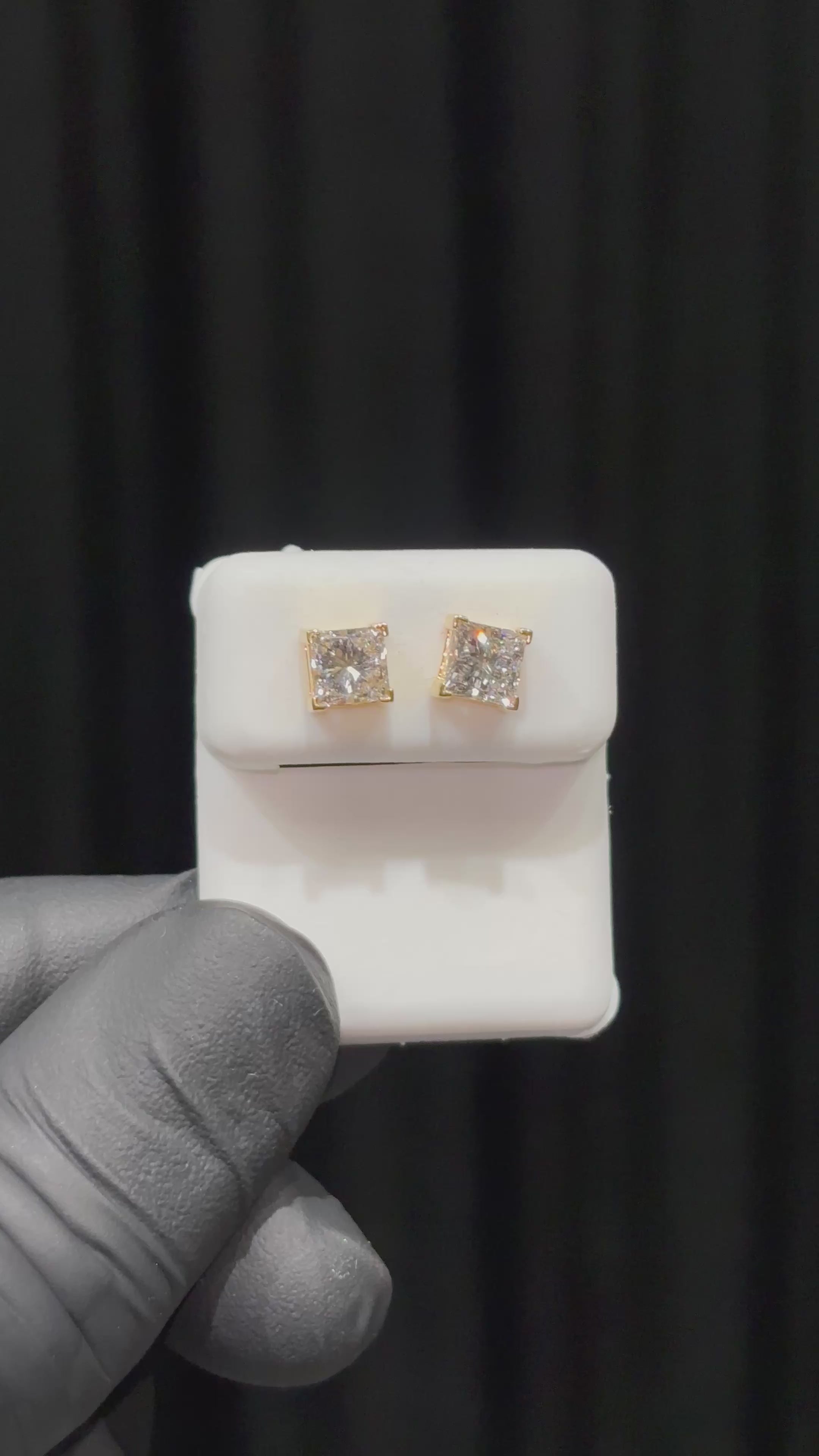 ~ 10k CVD Lab 1.5ct Solitaire Princess Cut Earrings