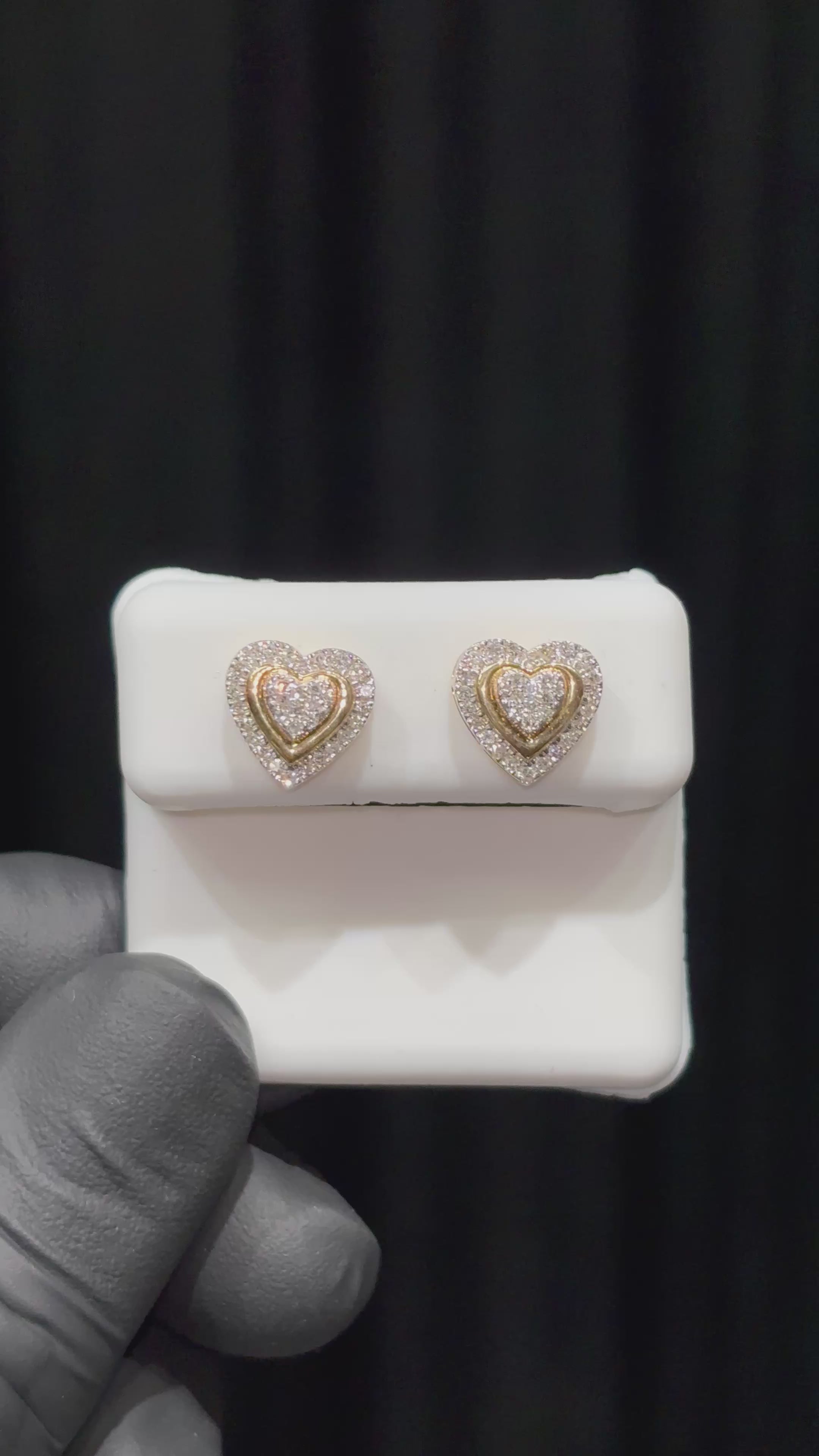 ~ 10k Si1 Gold Mirror Finish Three Layer Two Toned Heart Diamond Earrings