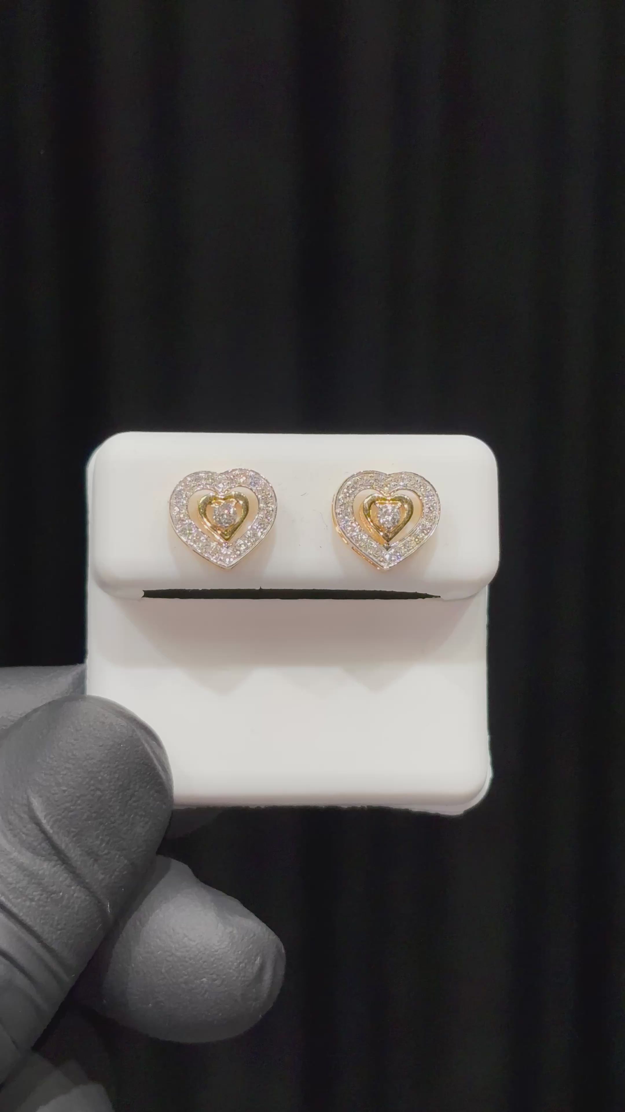 ~ 10k Si1 Inline Mirror Finish Diamond Heart Earrings