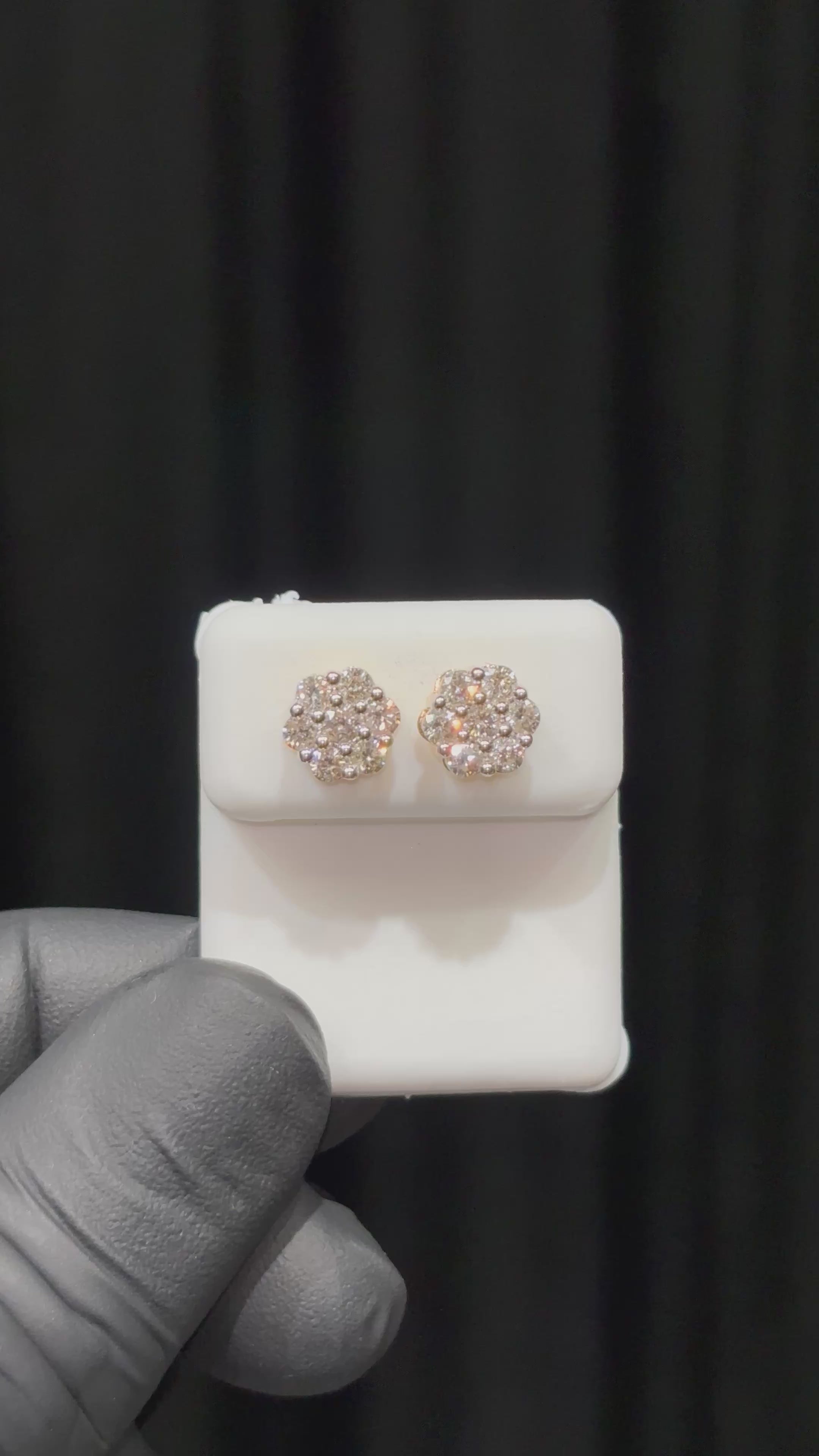 ~ 10k Si1 Two Tone Honeycomb Diamond Set Earrings
