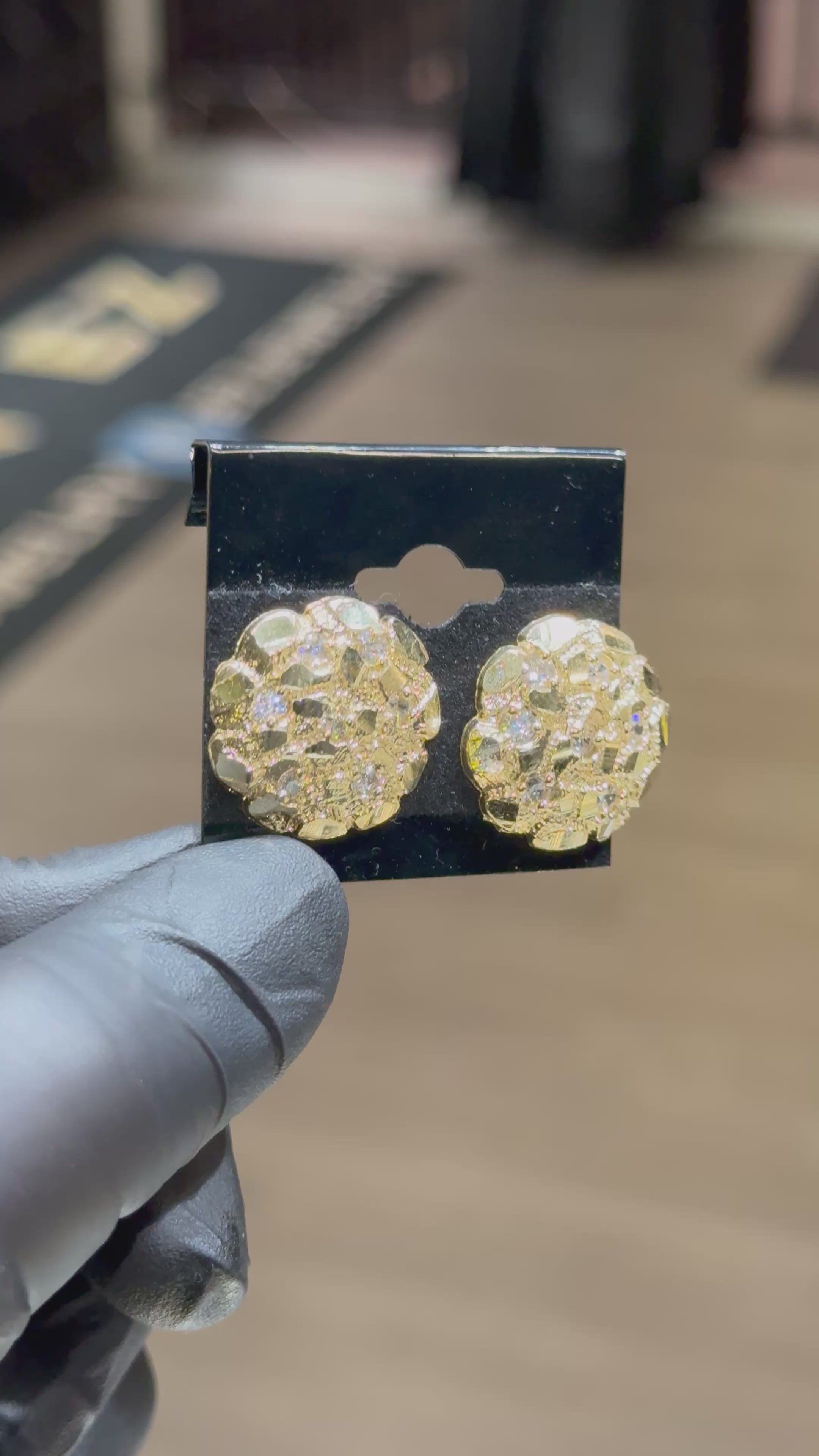 10k Extra-Large Crystal-Encrusted Circle/Cookie Nugget Earrings