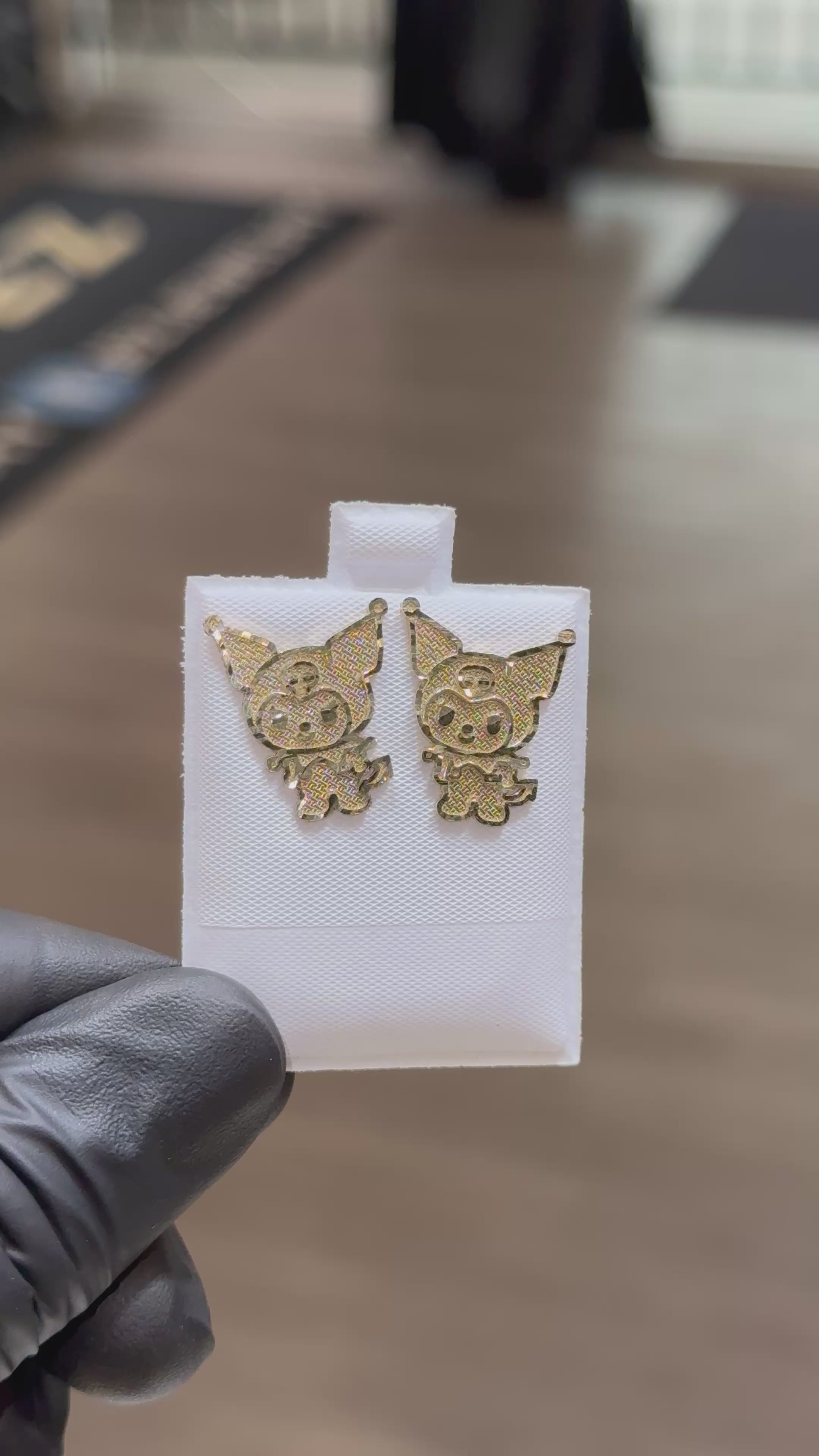 ~ 10k Large, Full Body Kuromi Earrings with Diamond Cut Border