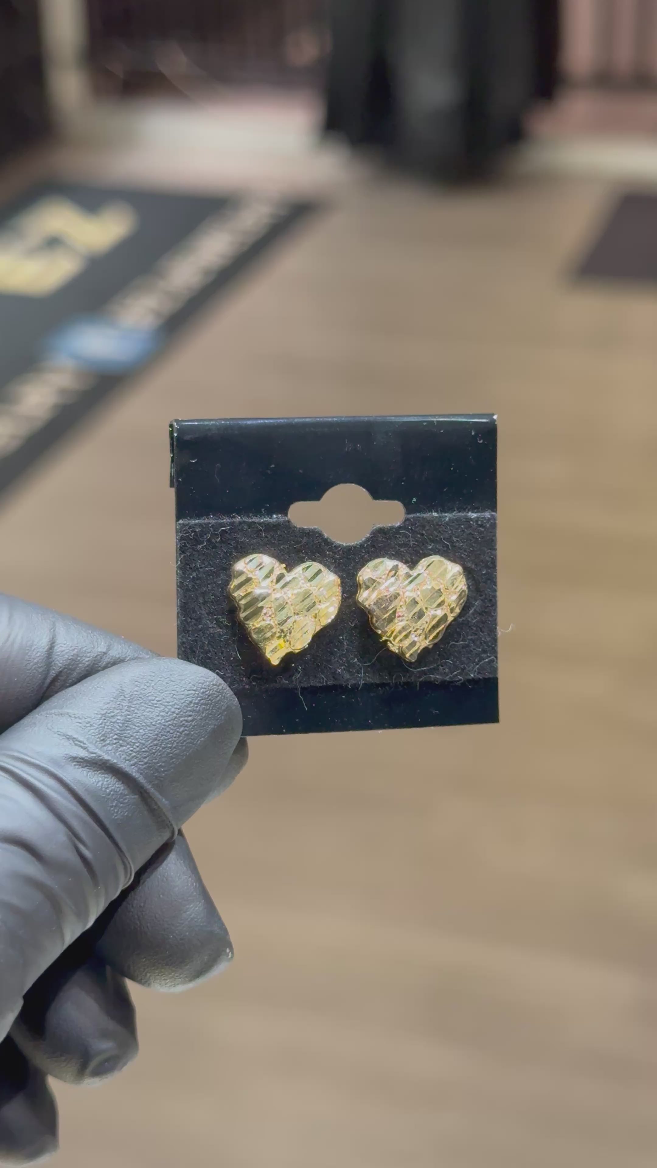 ~ 10k Medium Flat (O.G Style) Heart Nugget Cut Earrings with push in backings