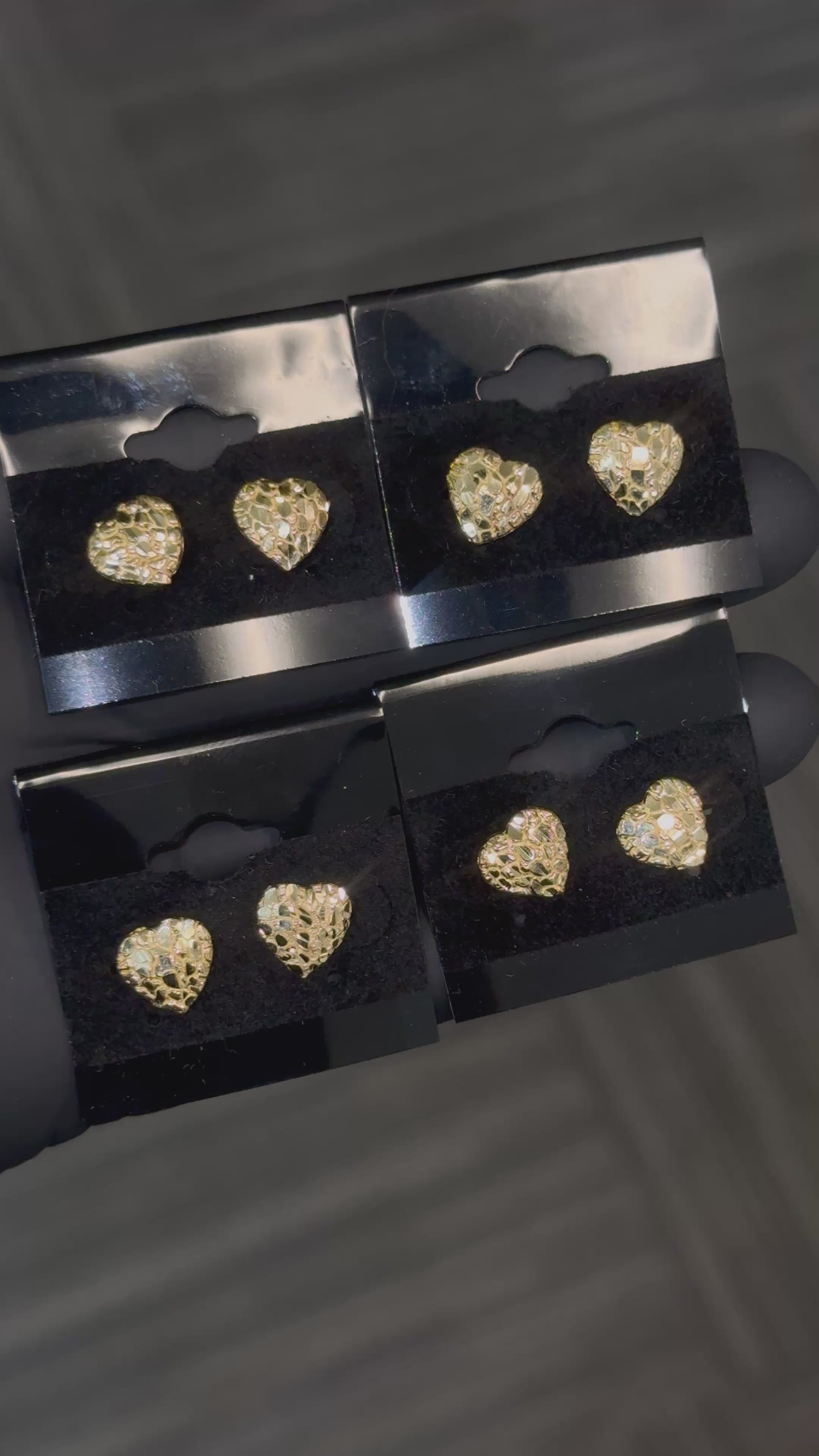 ~ 10k Small Bubble Heart Nugget Cut Earrings with push in backings