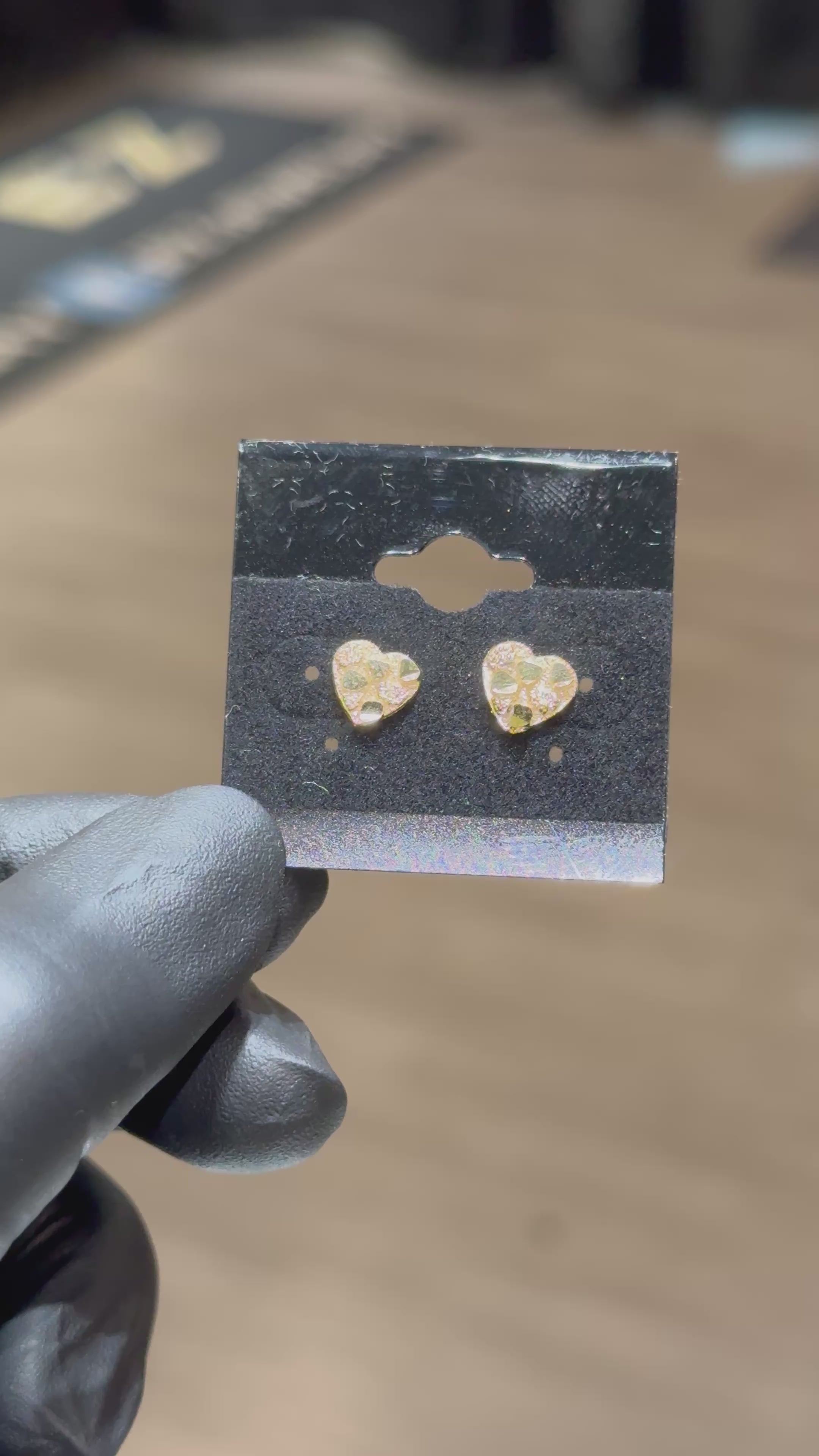 ~ 10k Mini Chunky, Flat Heart Nugget Cut Earrings with push in backings