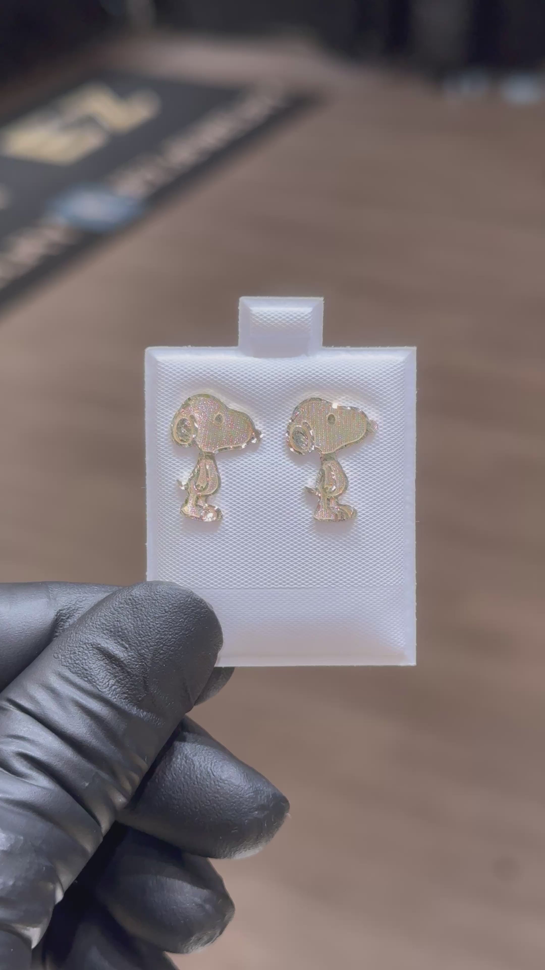 ~ 10k Small Snoopy Earrings with Diamond Cut Border