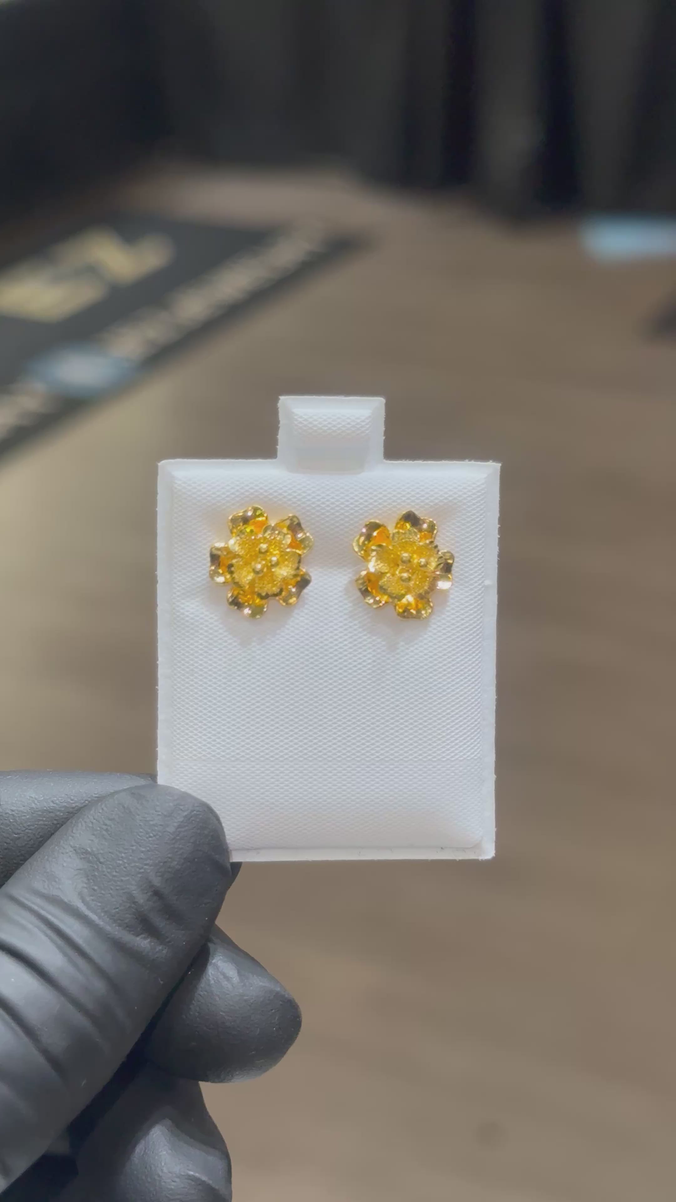 ~ 24k .999 Pure 10-Petaled Hibiscus earrings with Diamond-Dusted Center, Polished Edges with Solid 24k Backings