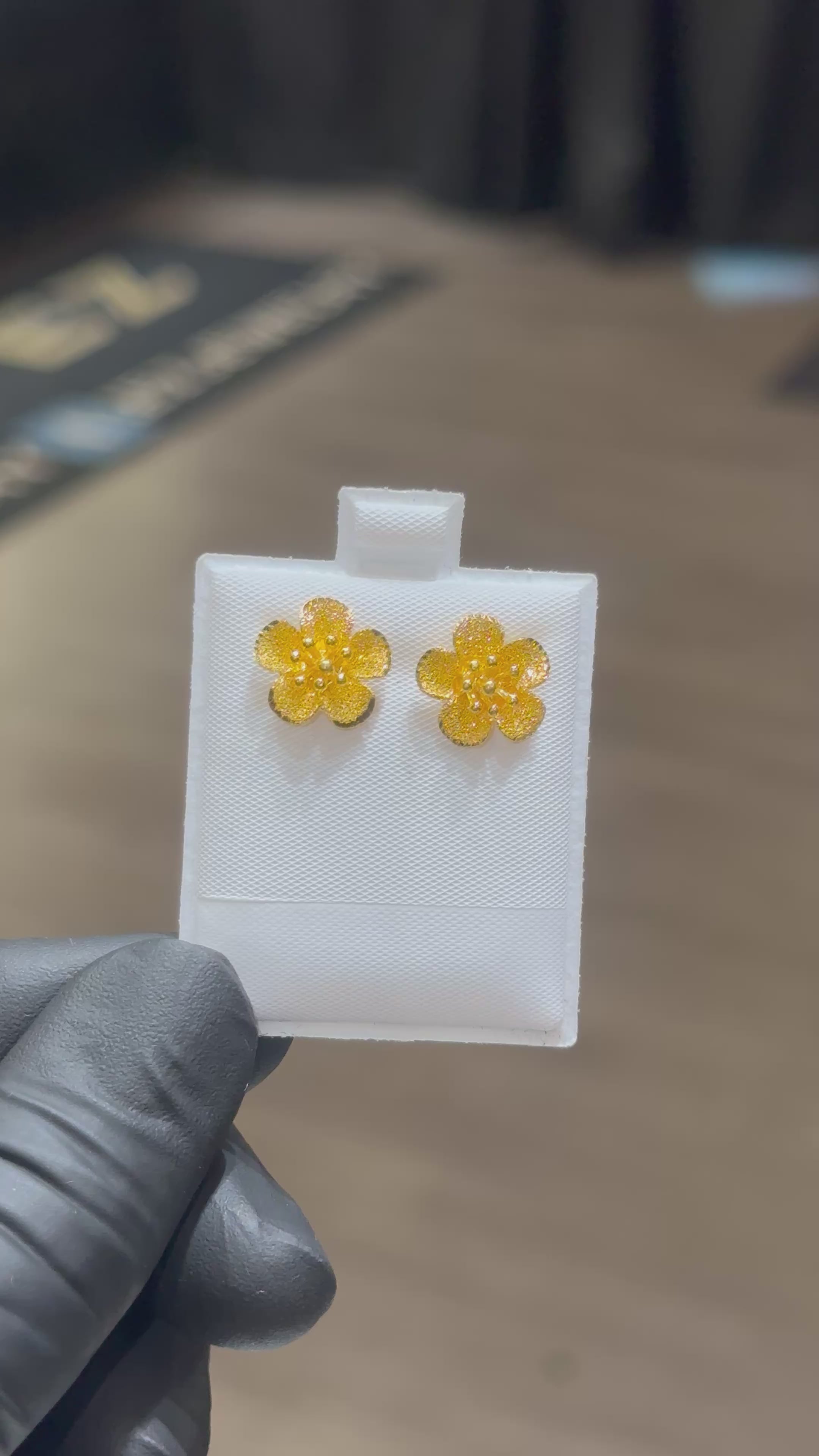 24k Pure Full-Diamond-Dusted Hibiscus Earrings