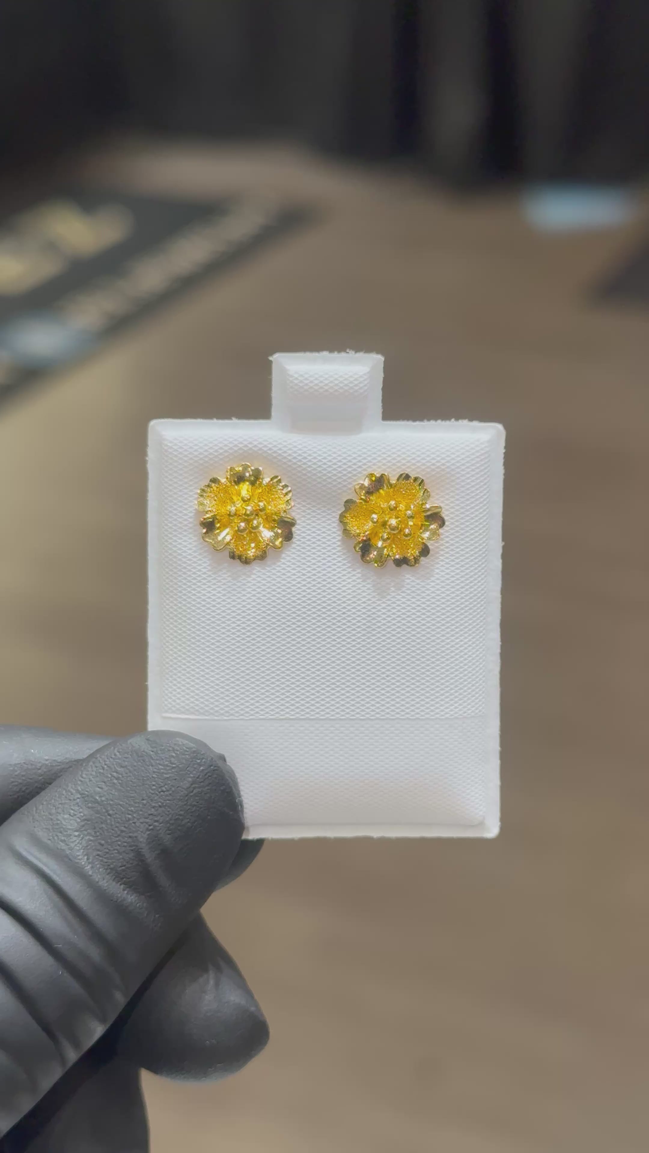 ~ 24k .999 Pure Rigid Petal Hibiscus earrings with Alternating Diamond Dusted and Polished Petals with Solid 24k Backings