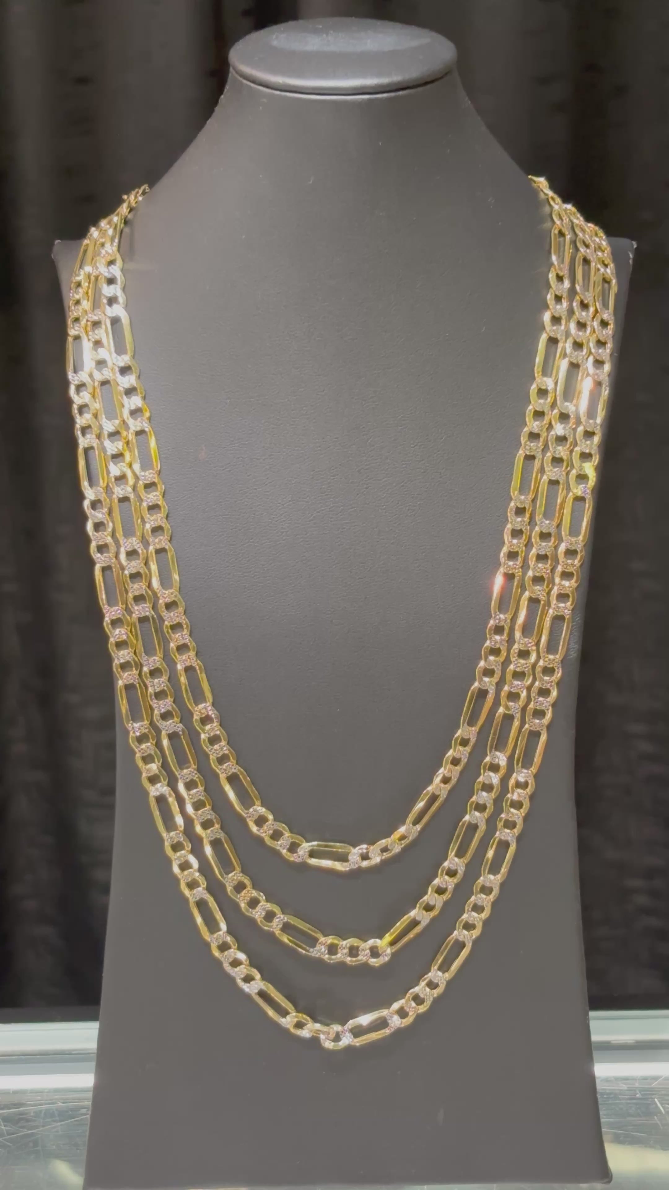 ~ 10k 6.3mm Pave-Cut Two-Tone Figaro Chain