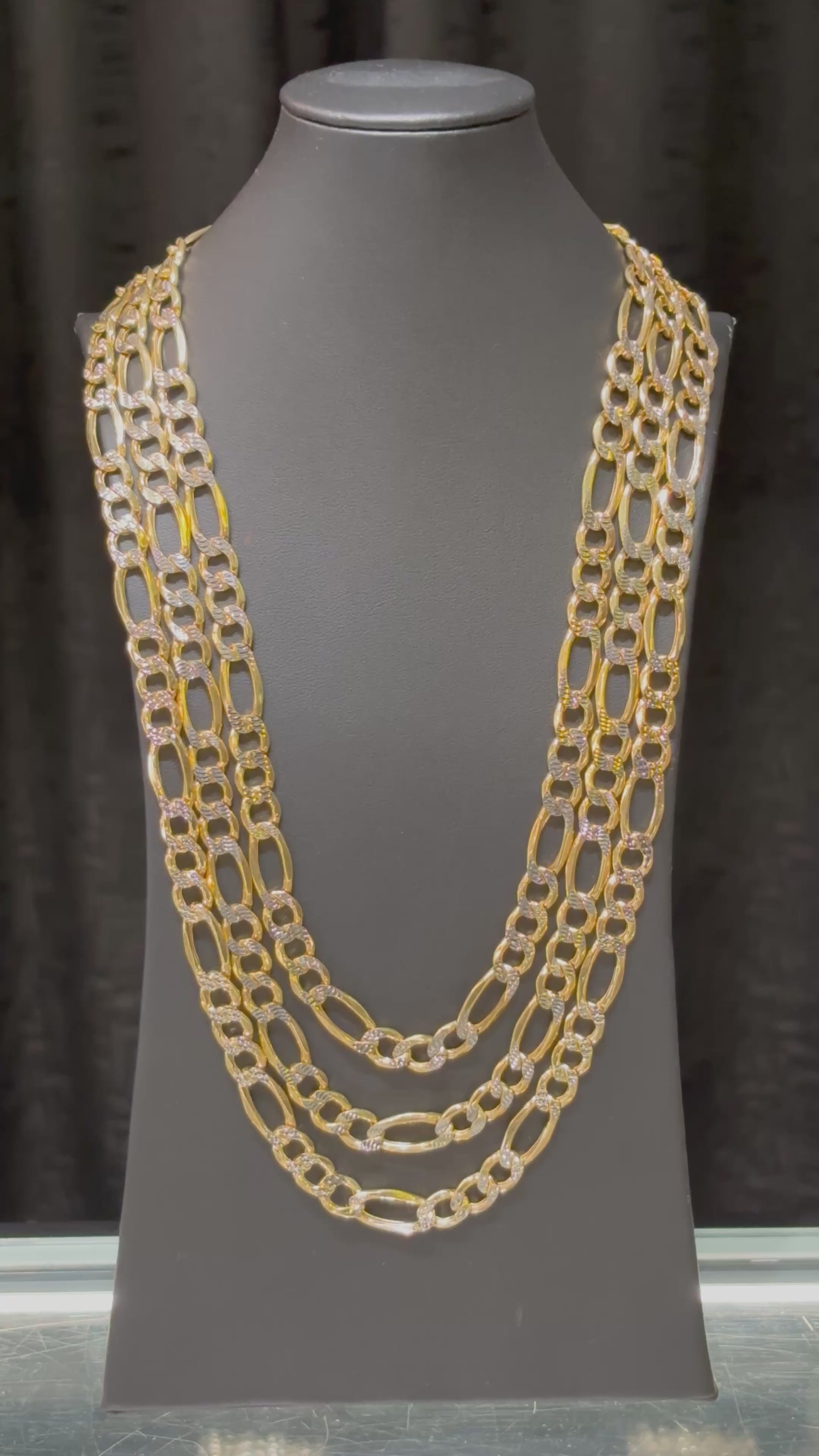 ~ 10k 8.5mm Pave-Cut Two-Tone Figaro Chain