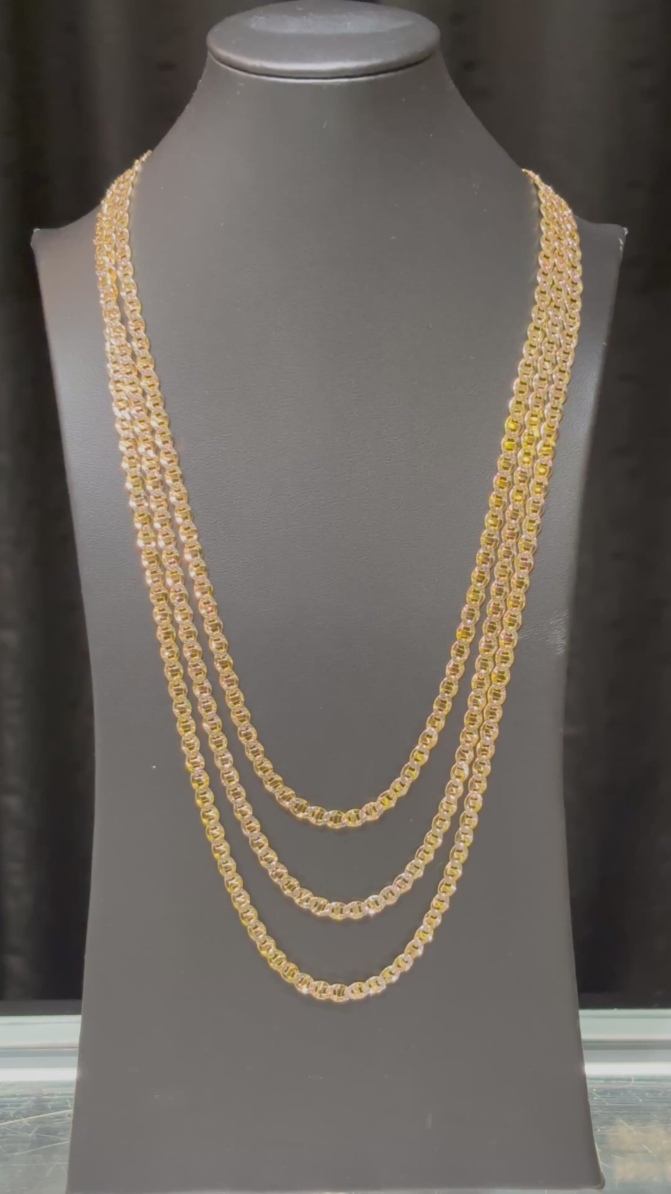 ~ 10k 4mm Puffed Pave-Cut Two-Tone Mariner Chain