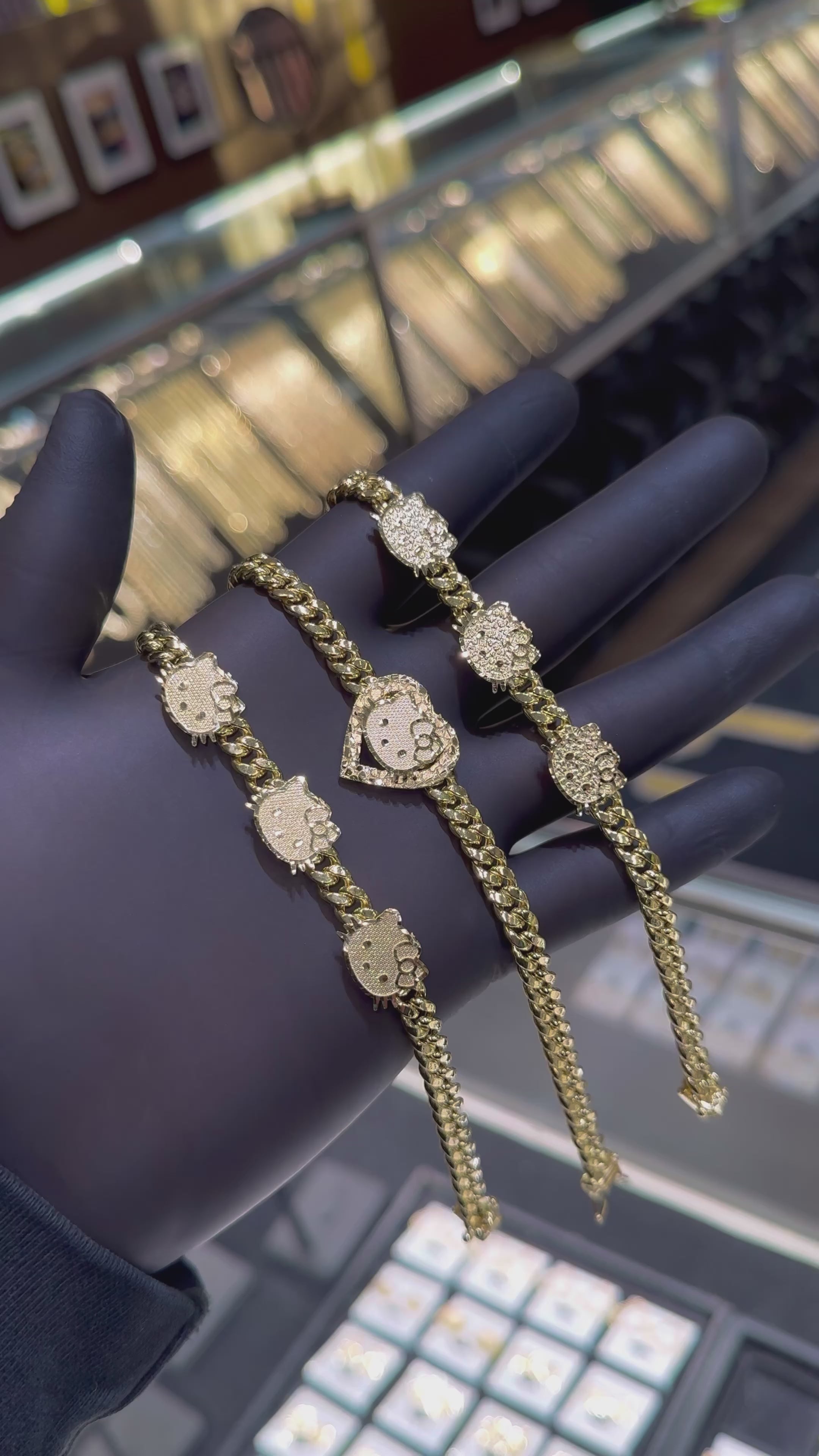 ~ 10k custom-made 5.5mm Miami Cuban Bracelet with x3 custom casted Hello Kitty Heads