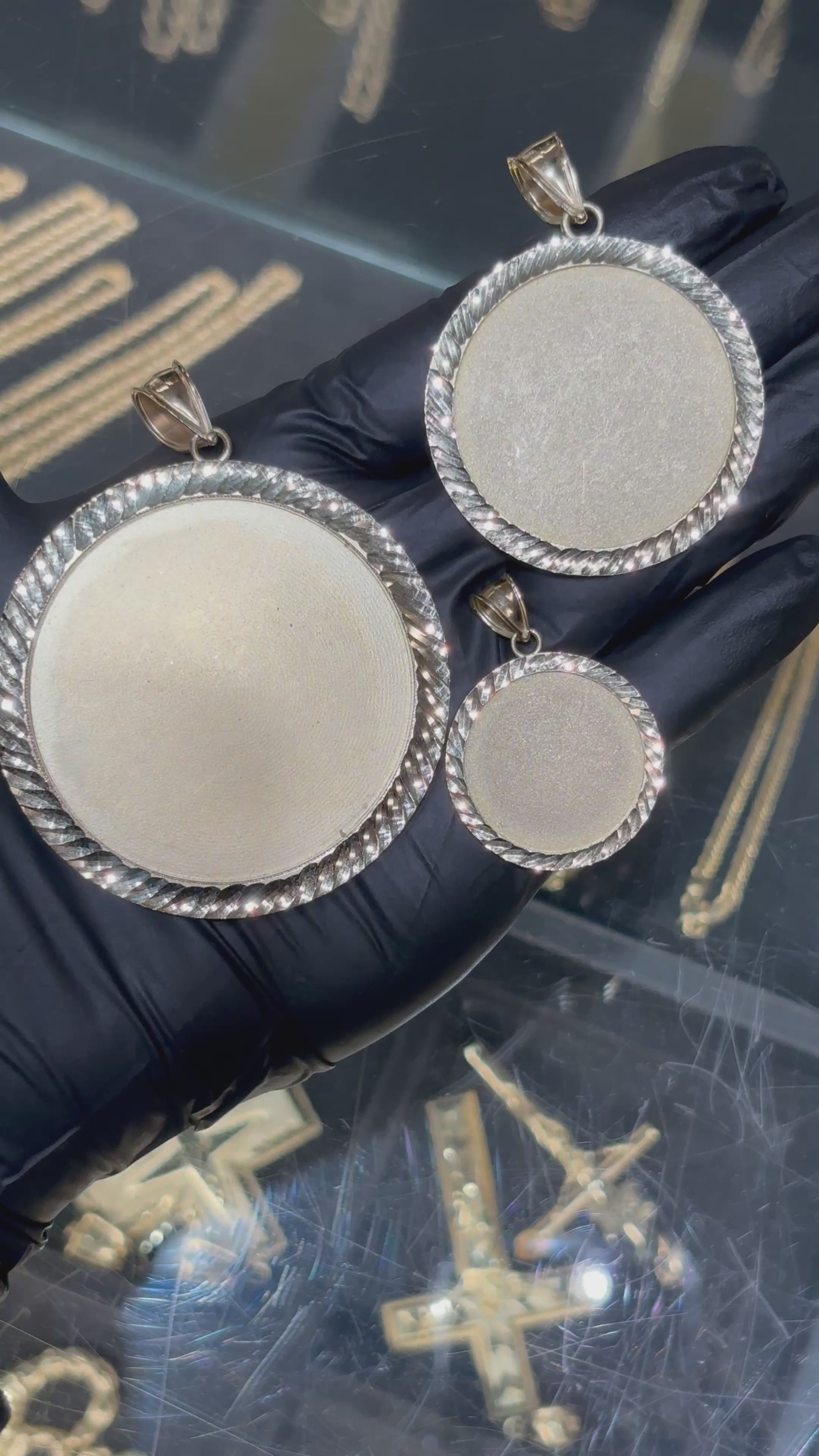 ~ 10k Diamond Cut Border Circle Memory Pendant