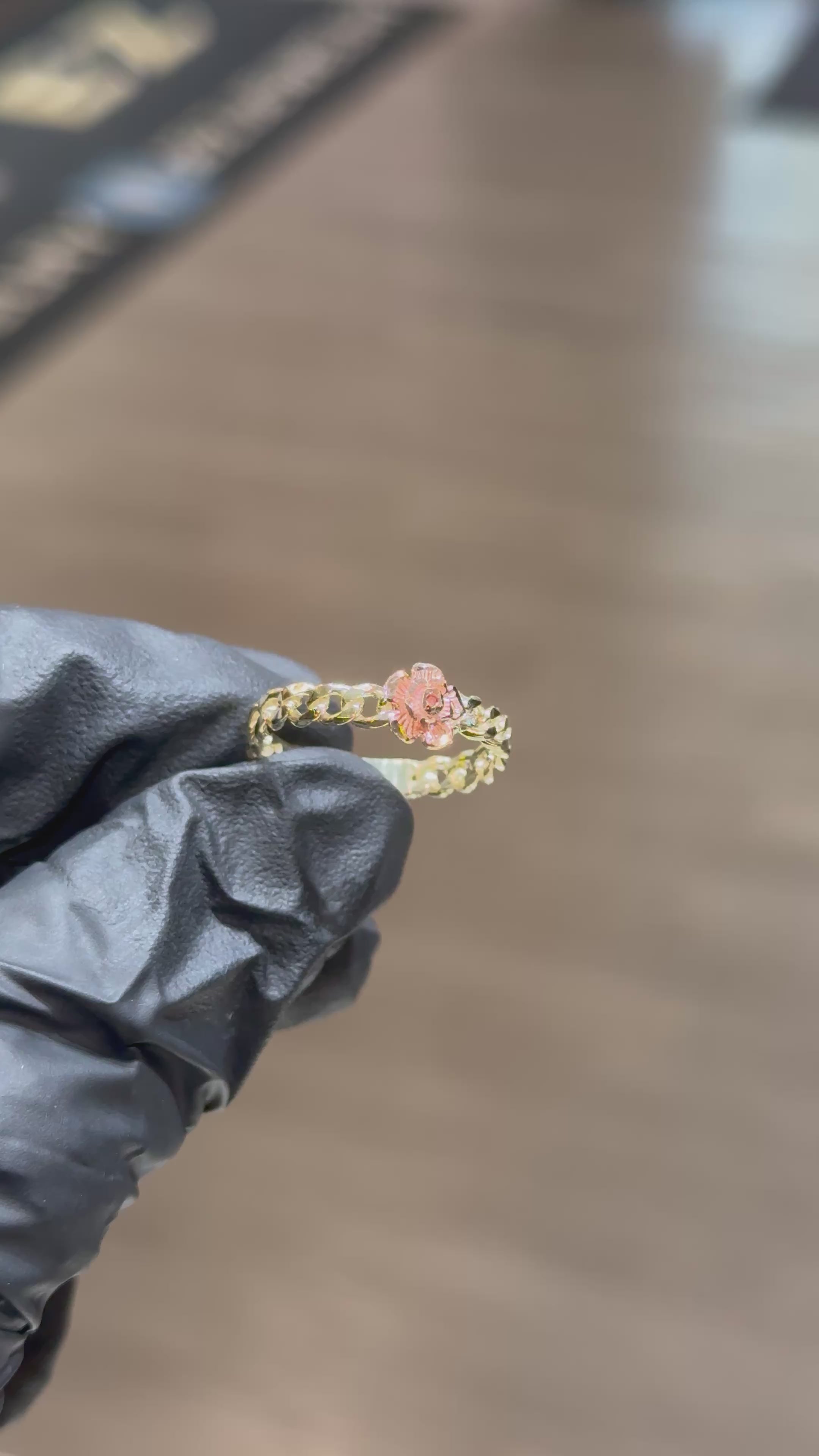 ~ 10k Solid 2-Toned Solid Miami Cuban Ring With Rose gold flower