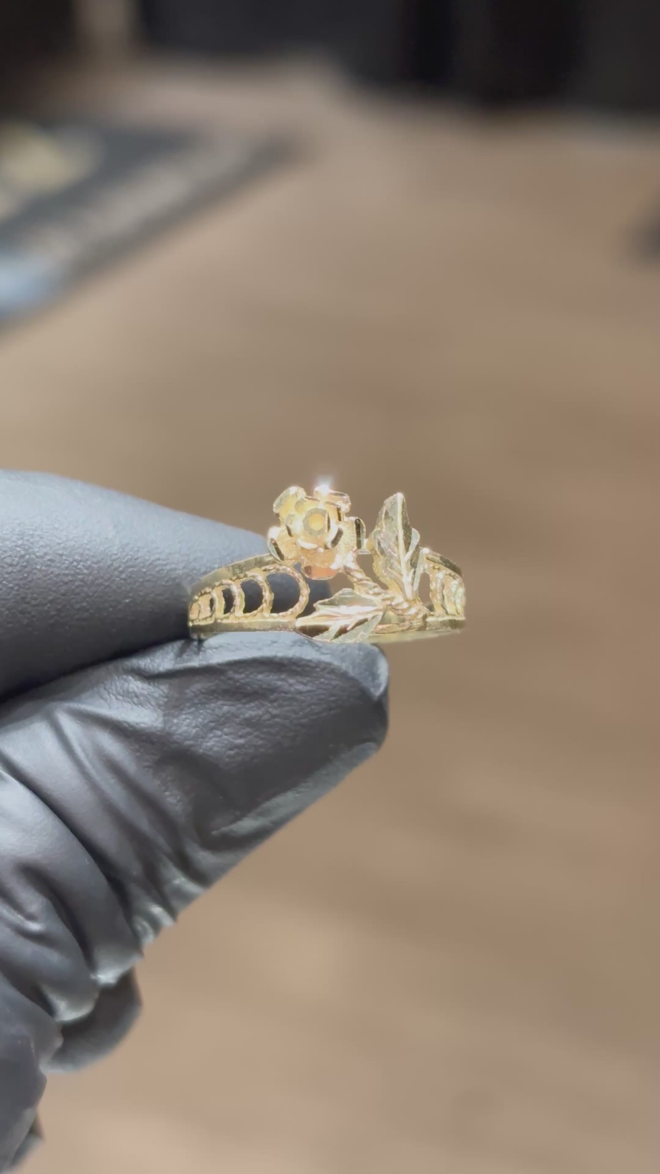 ~ 10k Solid Single-Casted Split Band with 3D Diamond Cut Rose