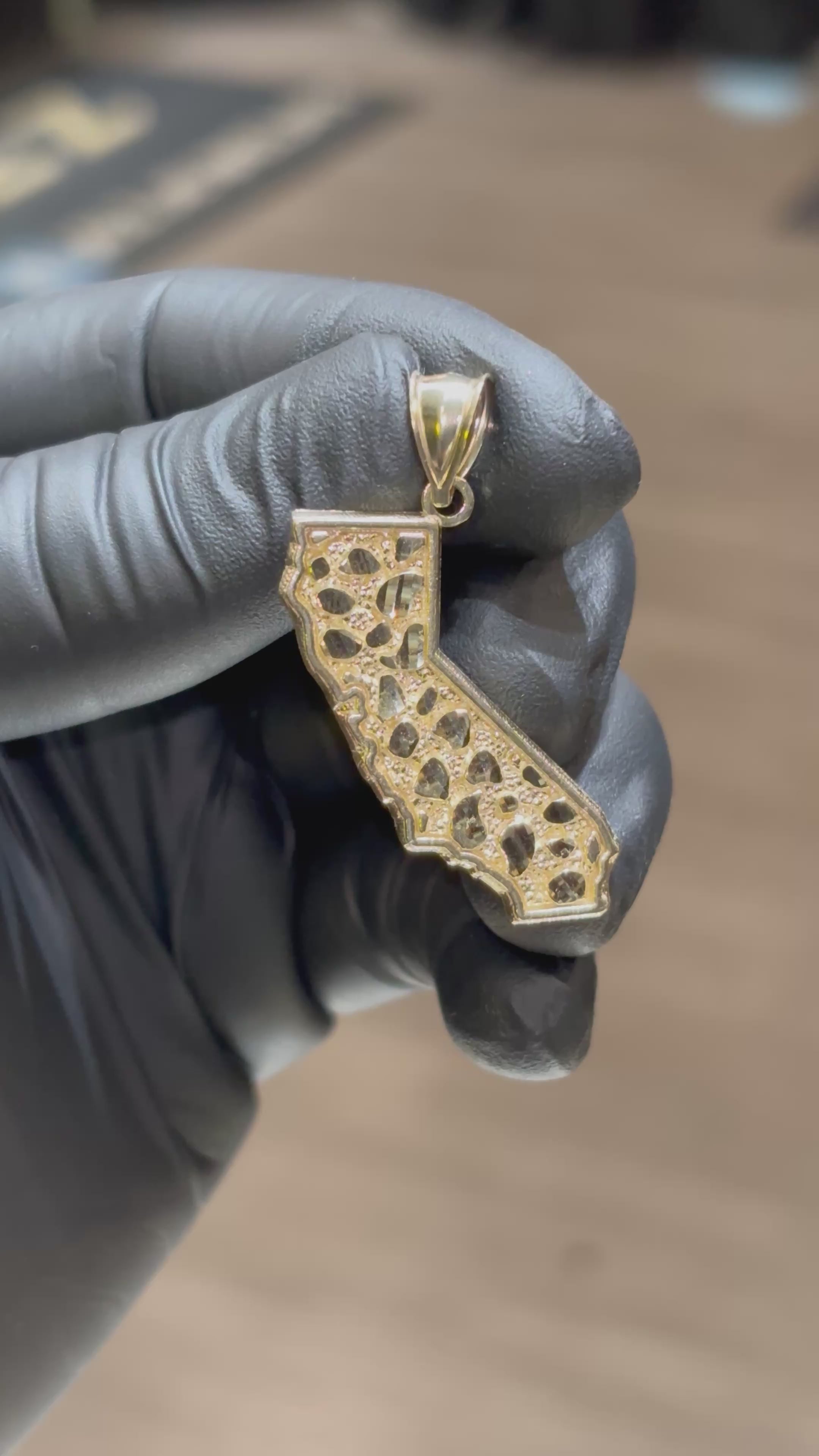 ~ 10k California-Shaped Pendant with Nugget Design and Diamond Cut Detail