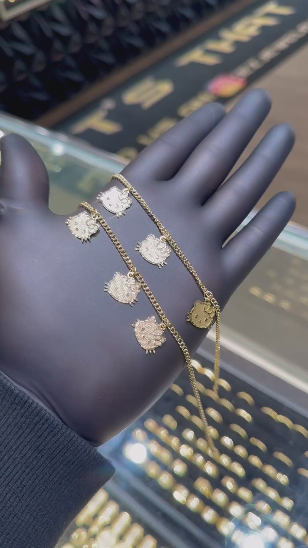 ~ 10k custom-made 3mm Cuban Anklet with x3 custom casted Hello Kitty Heads