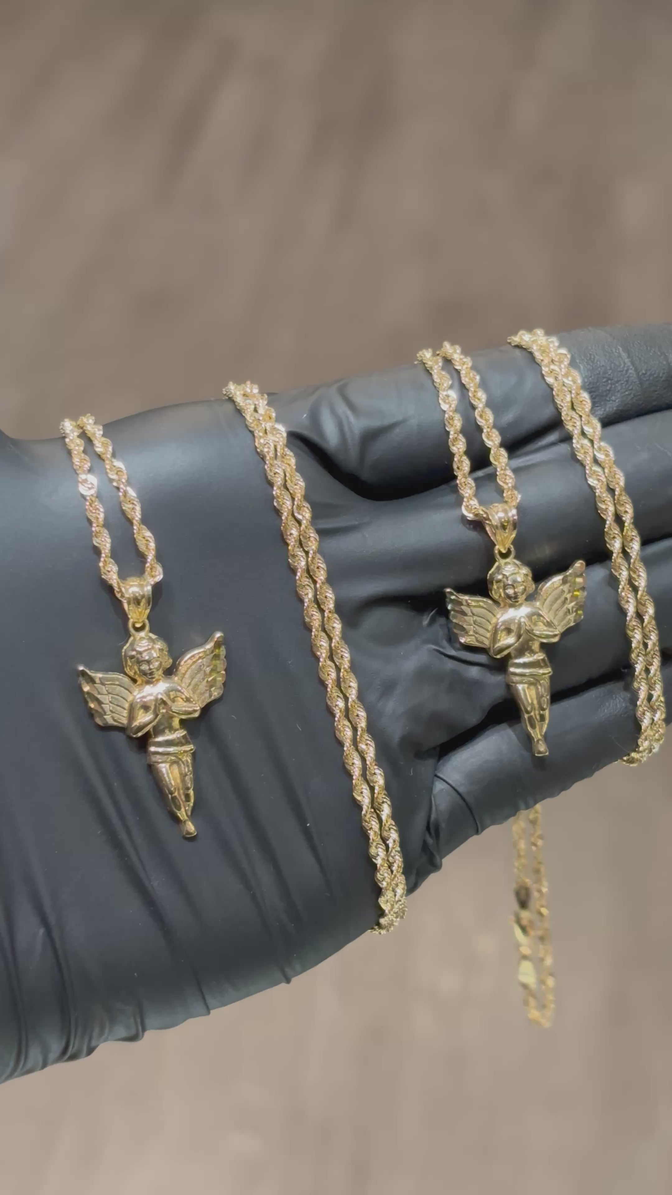 ~ 10k Full-Body, Embossed Angel Pendant with Diamond Cut Detail Paired with a 24" 2.5 mm Laser Cut Rope