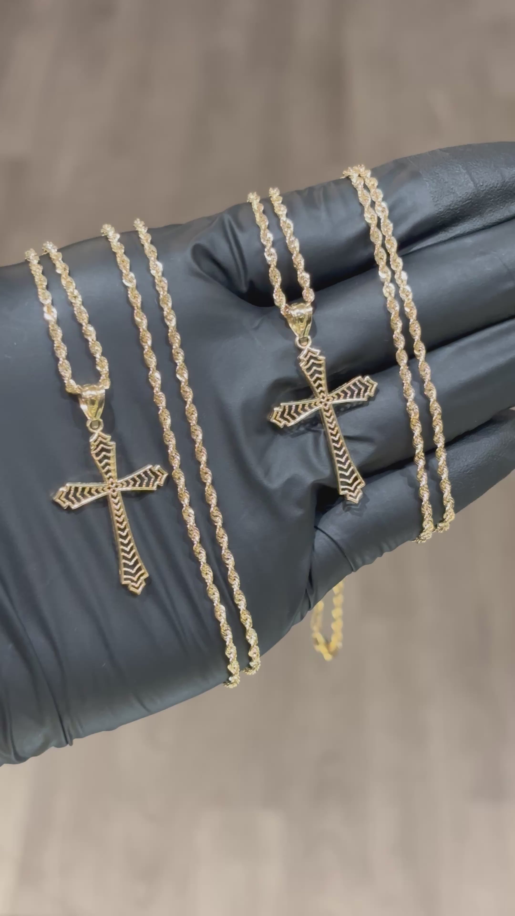 ~ 10k Dainty, Hollow French Cross with Beaded Detailing Paired with a 24" 1.9 mm Laser Cut Rope