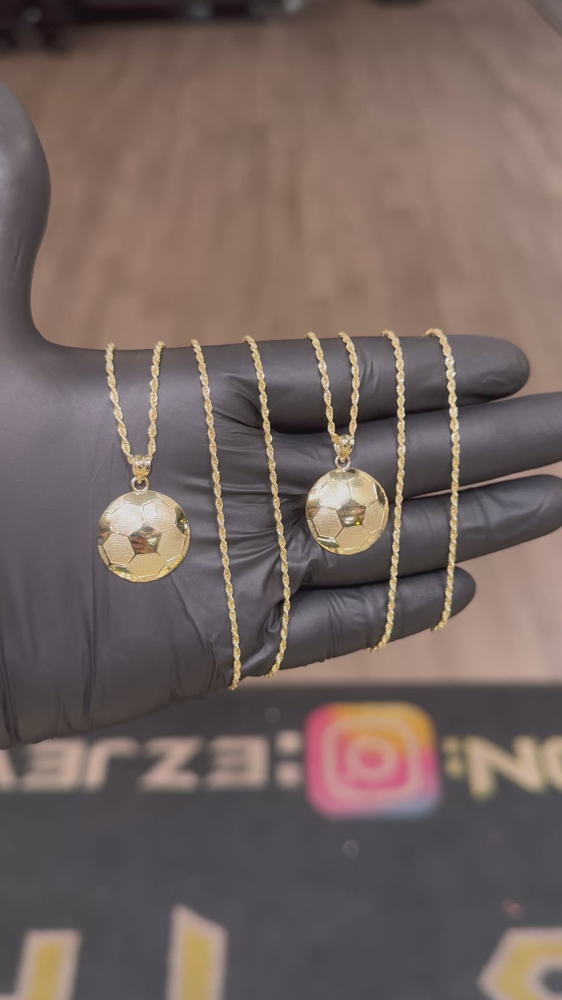 ~ 10k 1.6mm Silk Rope Chain W/ 10k Medium Soccer Pendant