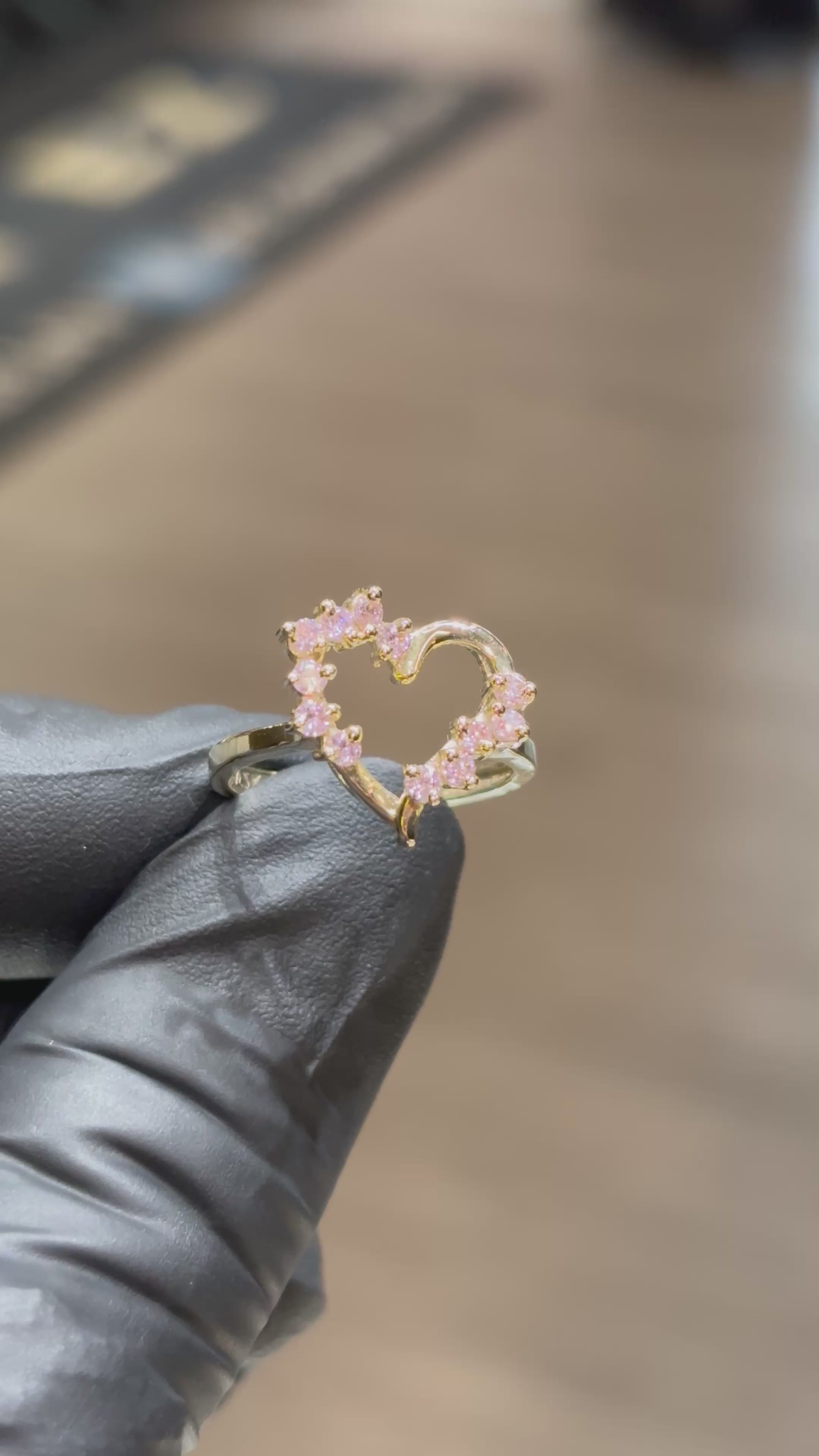 ~ 10k Single, Casted Open Heart Ring, Studded with Pink Crystals