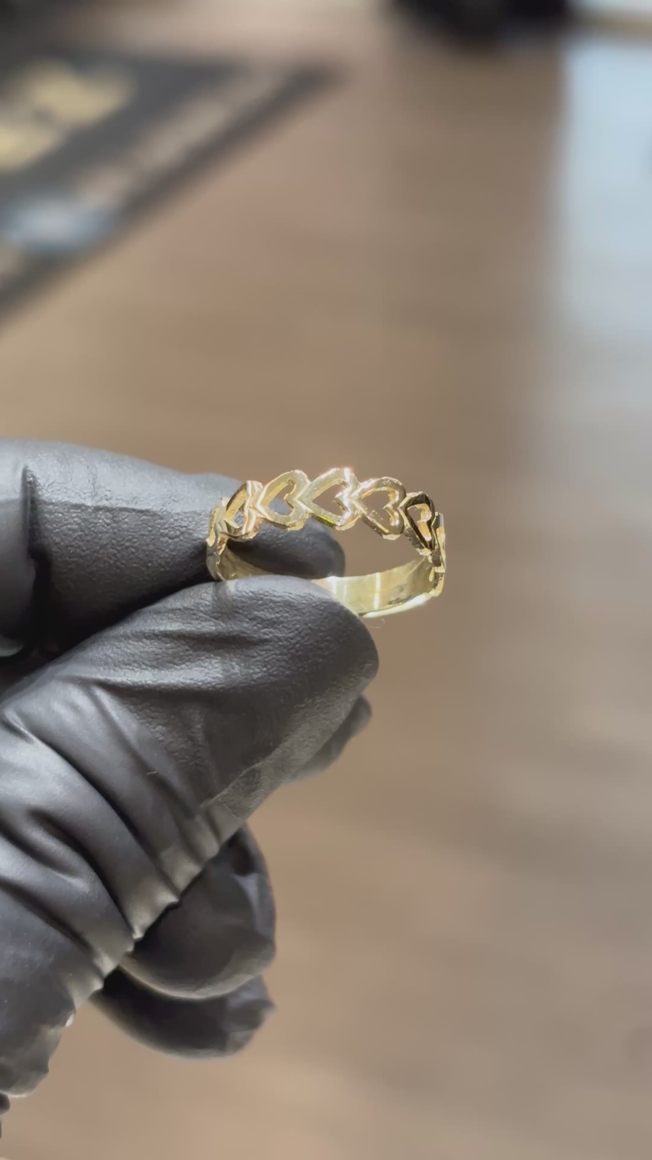 ~ 10k Horizontal, Repetitive Solid Heart Link Ring