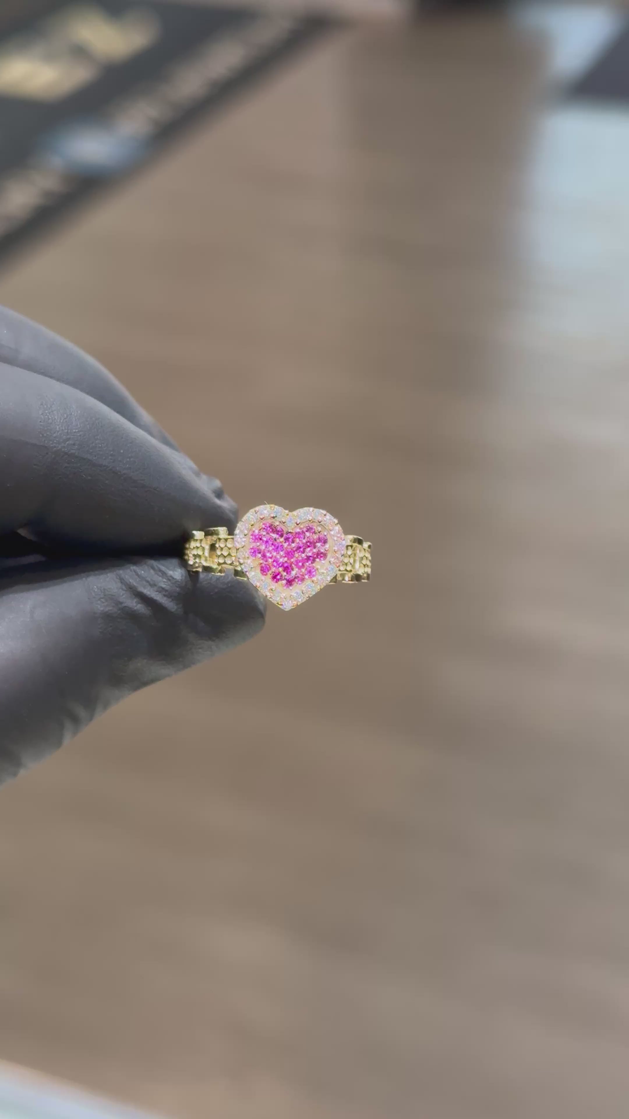 ~ 10k Purple and White Crystal Heart With a Solid Rolex-Style band