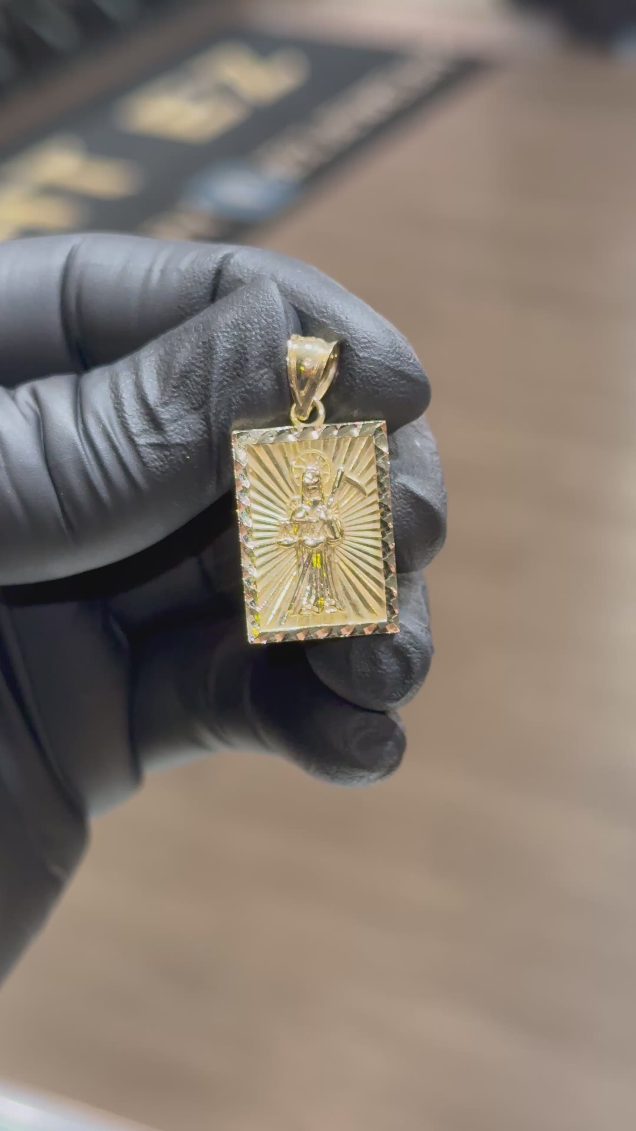 ~ 10k Santa Muerte Pendant with Diamond Cut Box Frame