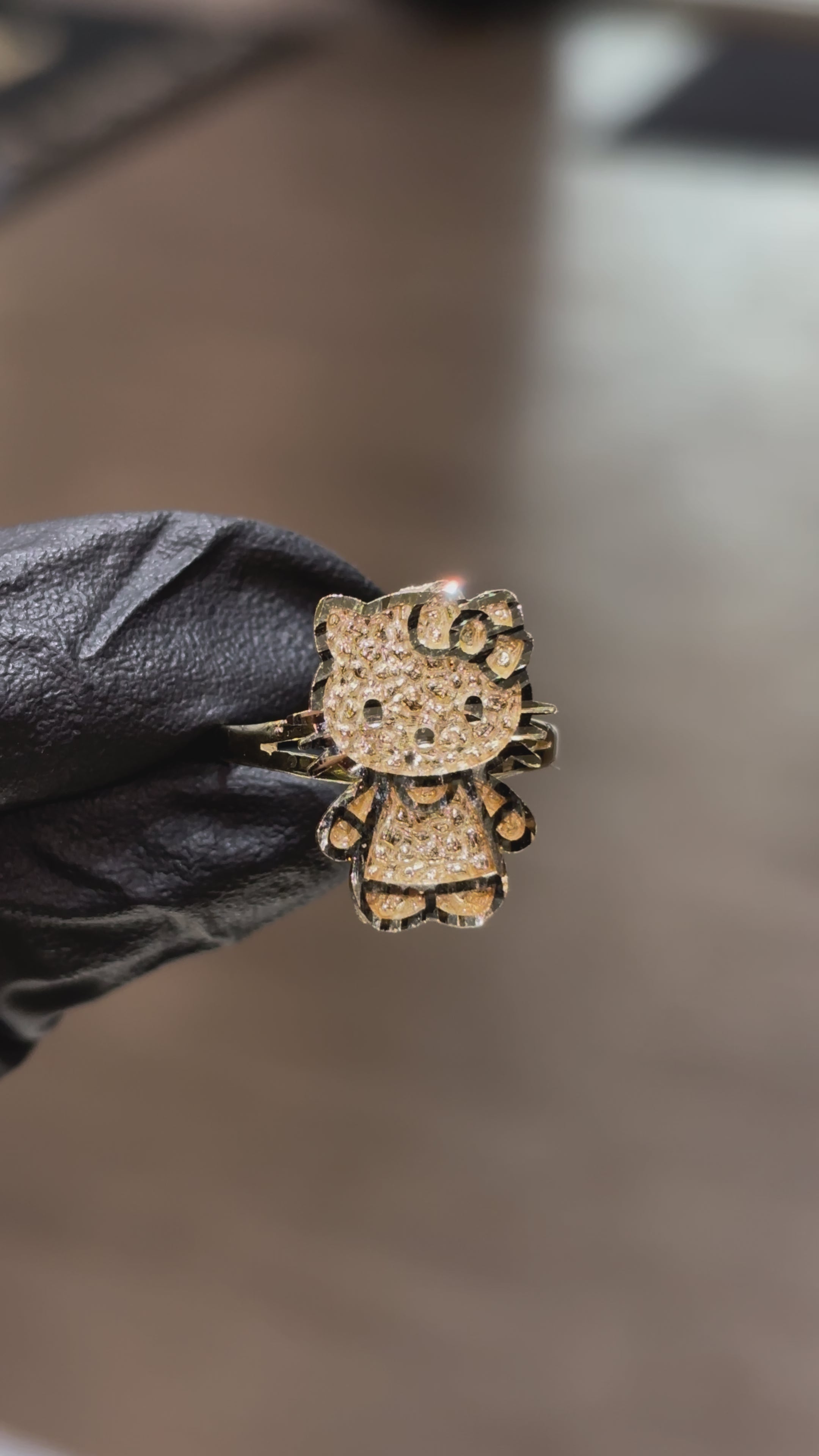 ~ 10k Small Full Body Nugget Hello Kitty Ring