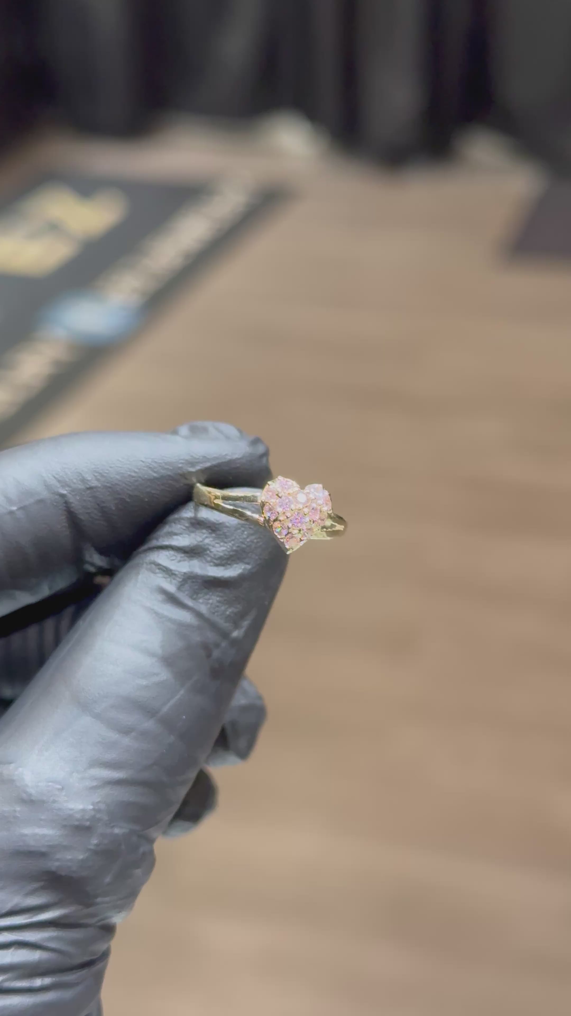 10k Small Pink Crystal Heart Ring
