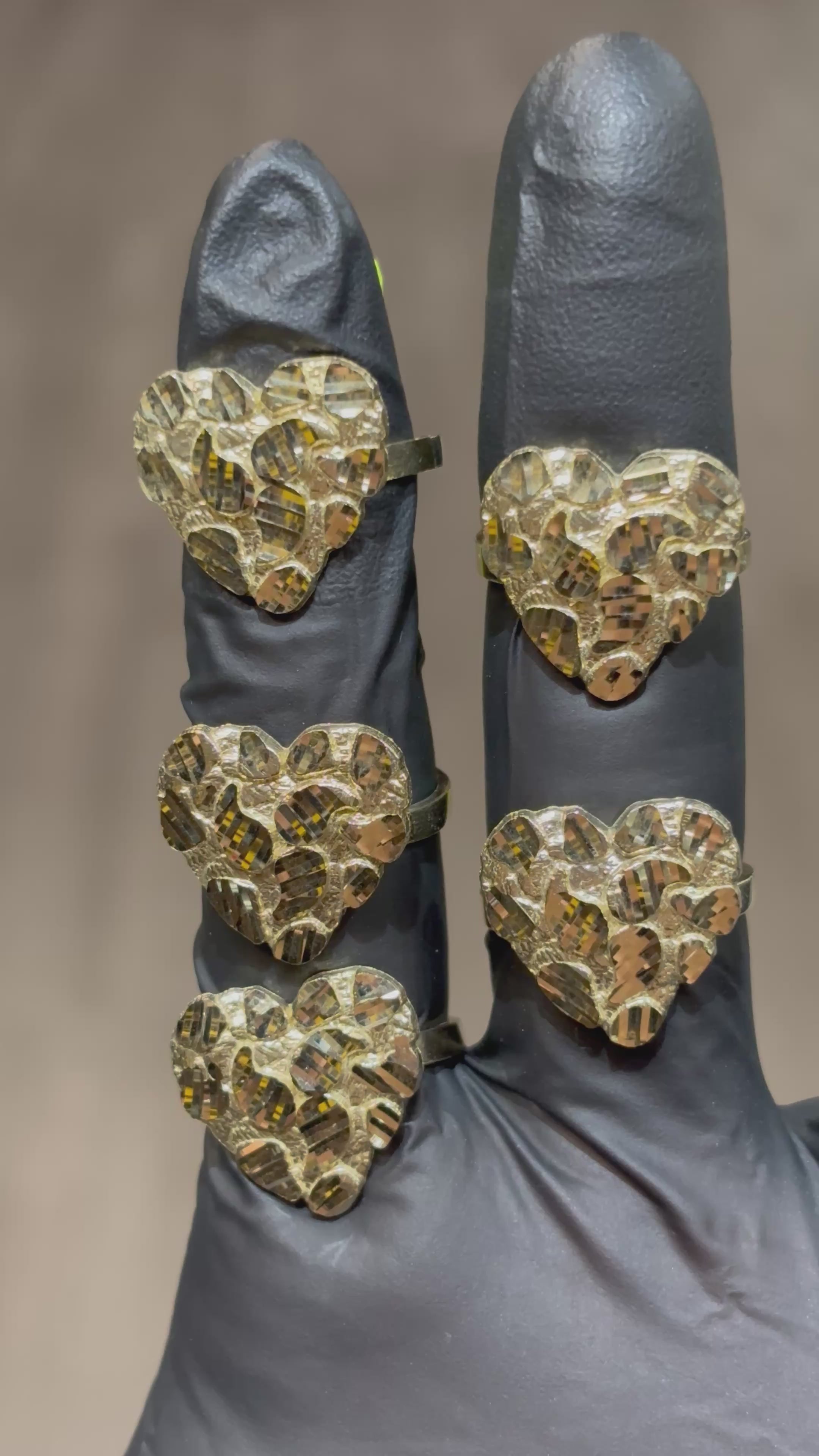 ~ 10k XL Chunky Diamond Cut Heart Nugget Ring