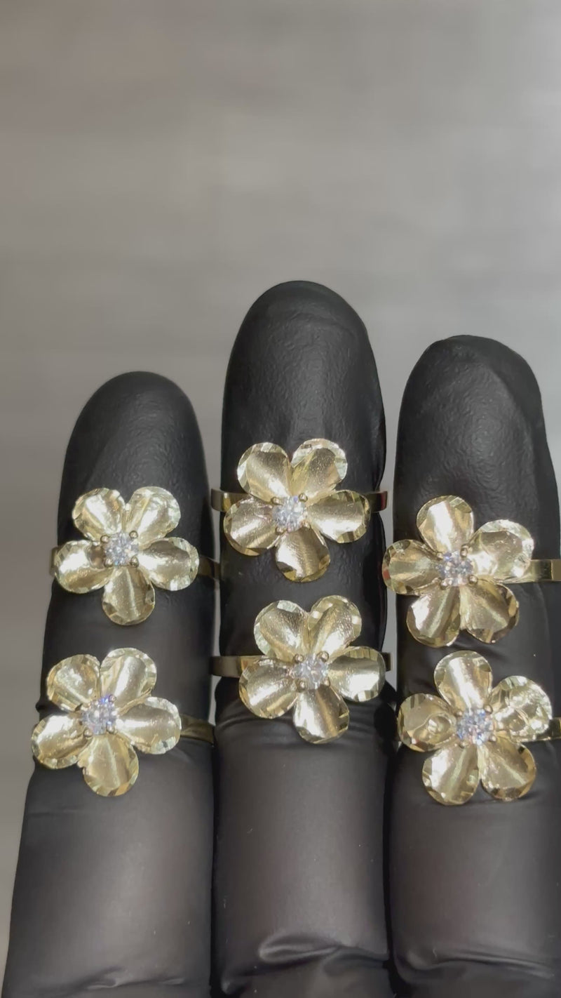 10k White/Light/Dark Pink Crystal Cuban Heart Ring