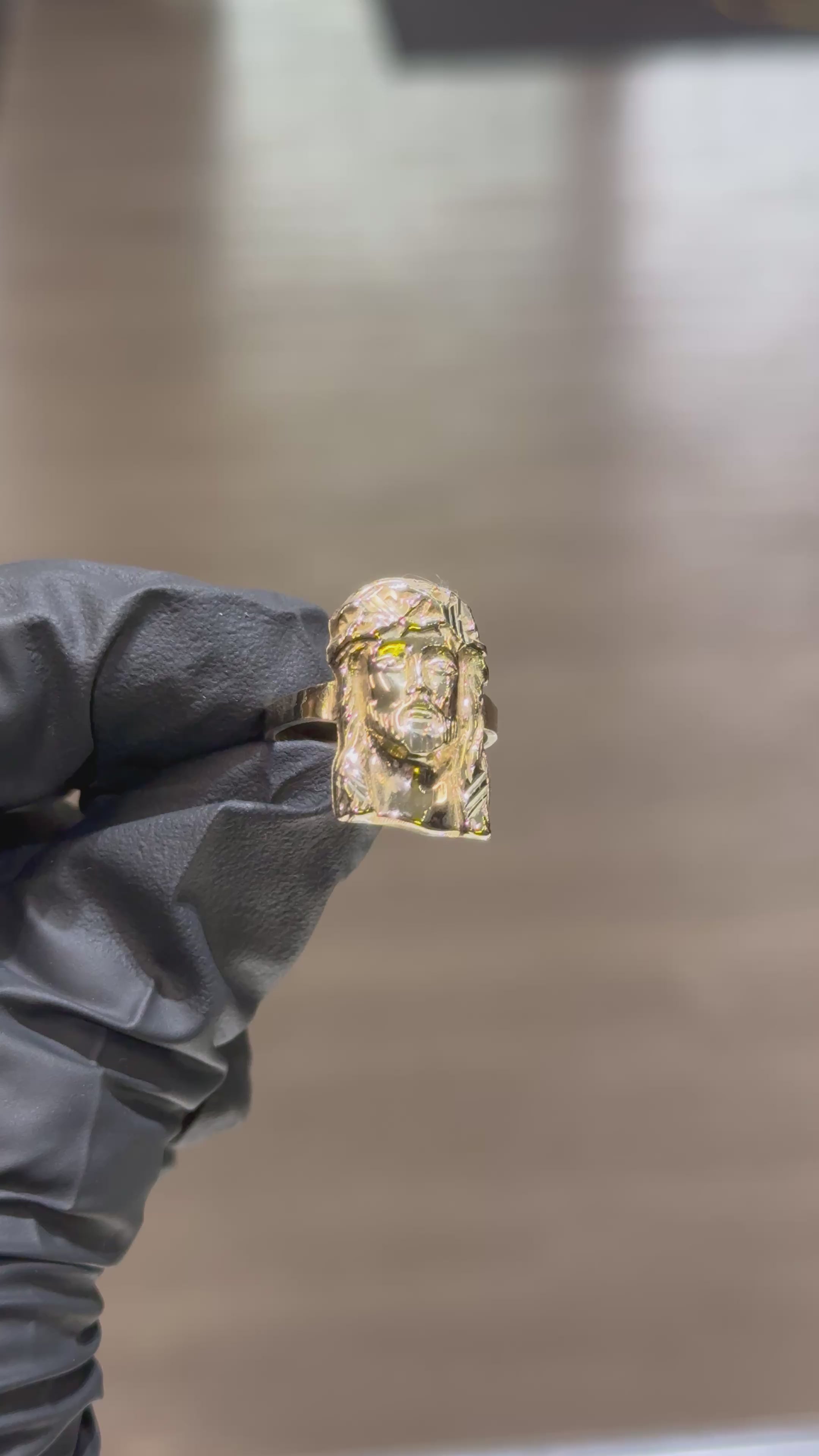 ~ 10k Solid Jesus Head Ring With Diamond Cut Details