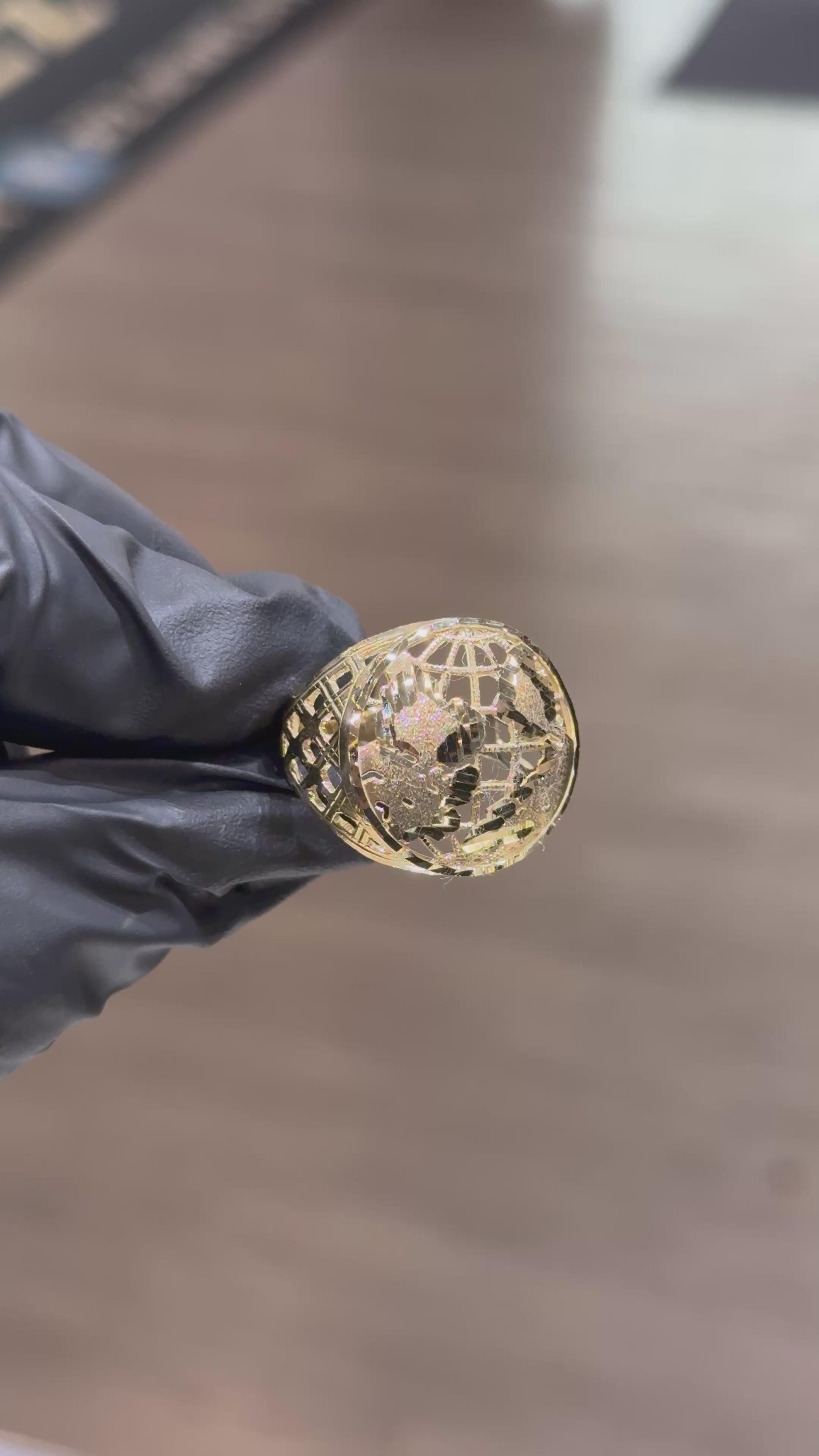~ 10k Large Cage-Style World Ring with Diamond Cut