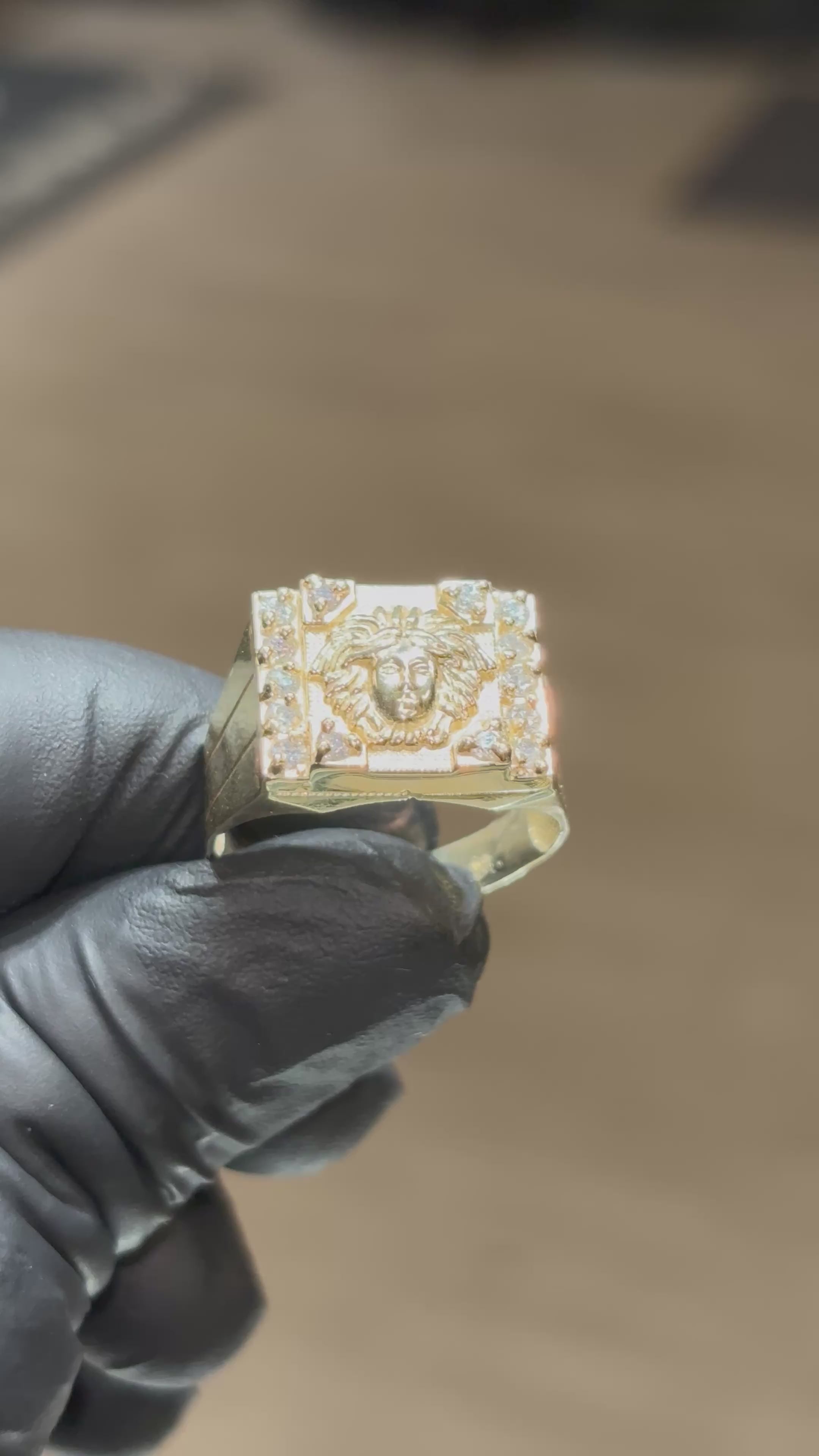 ~ 10k Single Casted, Embossed Crystal Encrusted, Medusa Ring