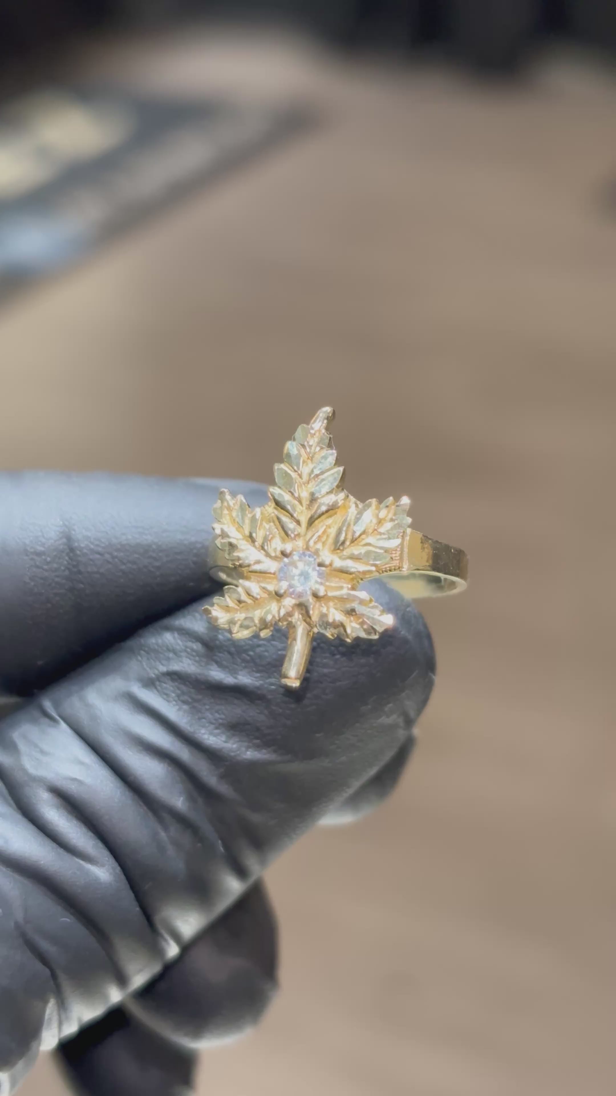 ~ 10k Embossed Cannabis Leaf with Crystal Center and Diamond Cut Detailing