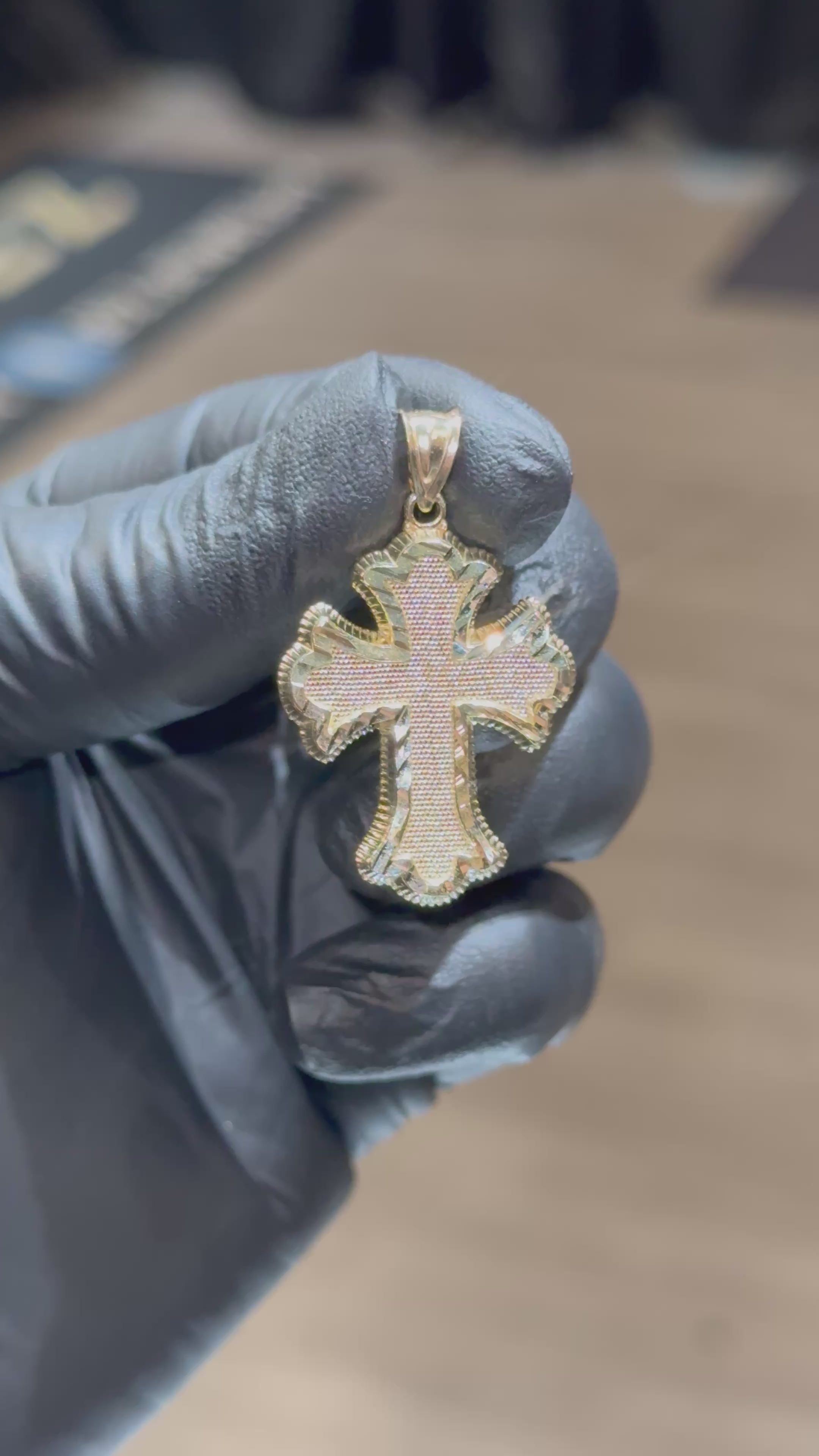 ~ 10k Medium/Large Chrome Heart Cross Pendant with Diamond Cut Border
