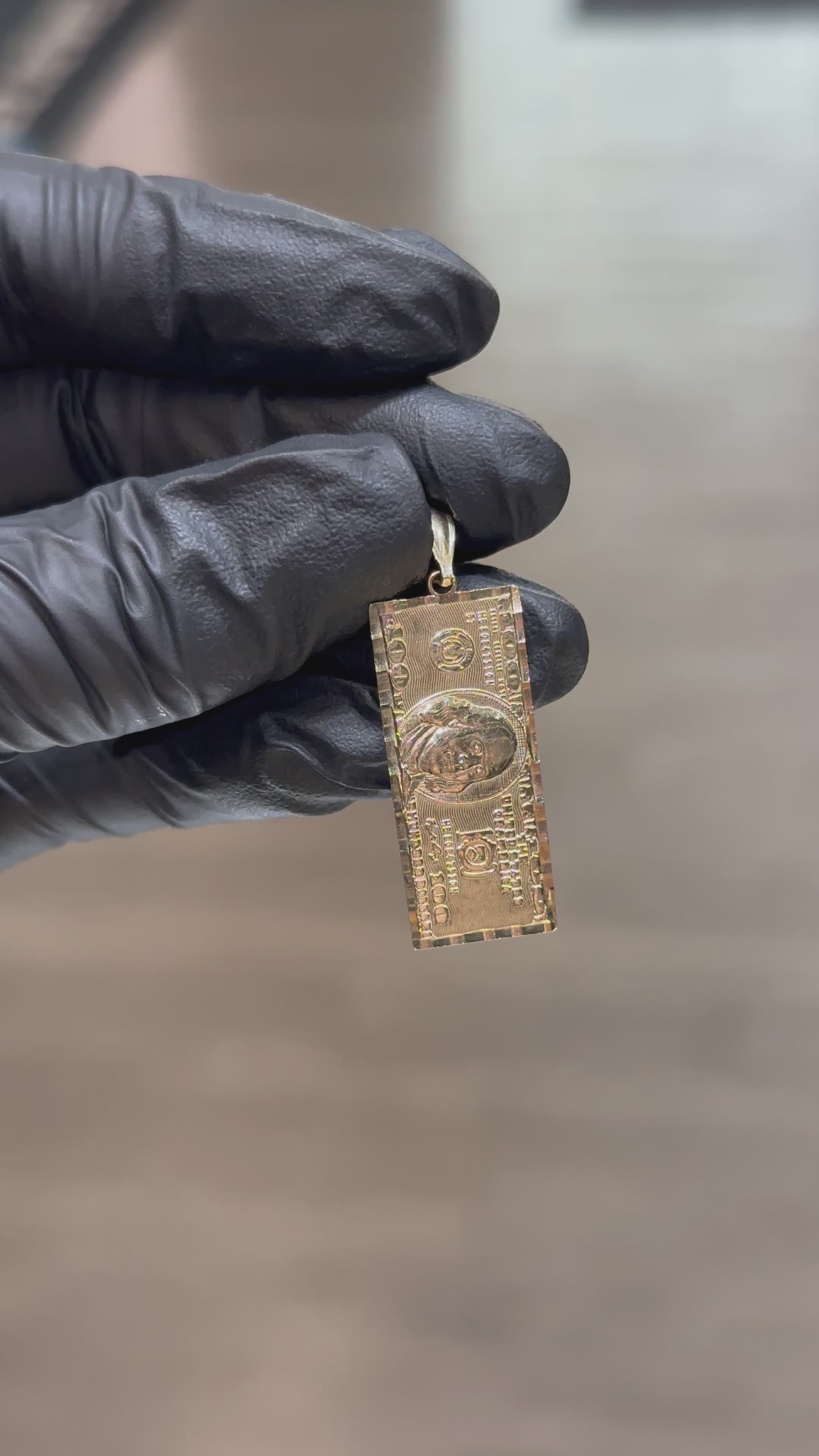 ~ 10k Solid Double-Layer Double-Sided $100 Dollar Bill Pendant