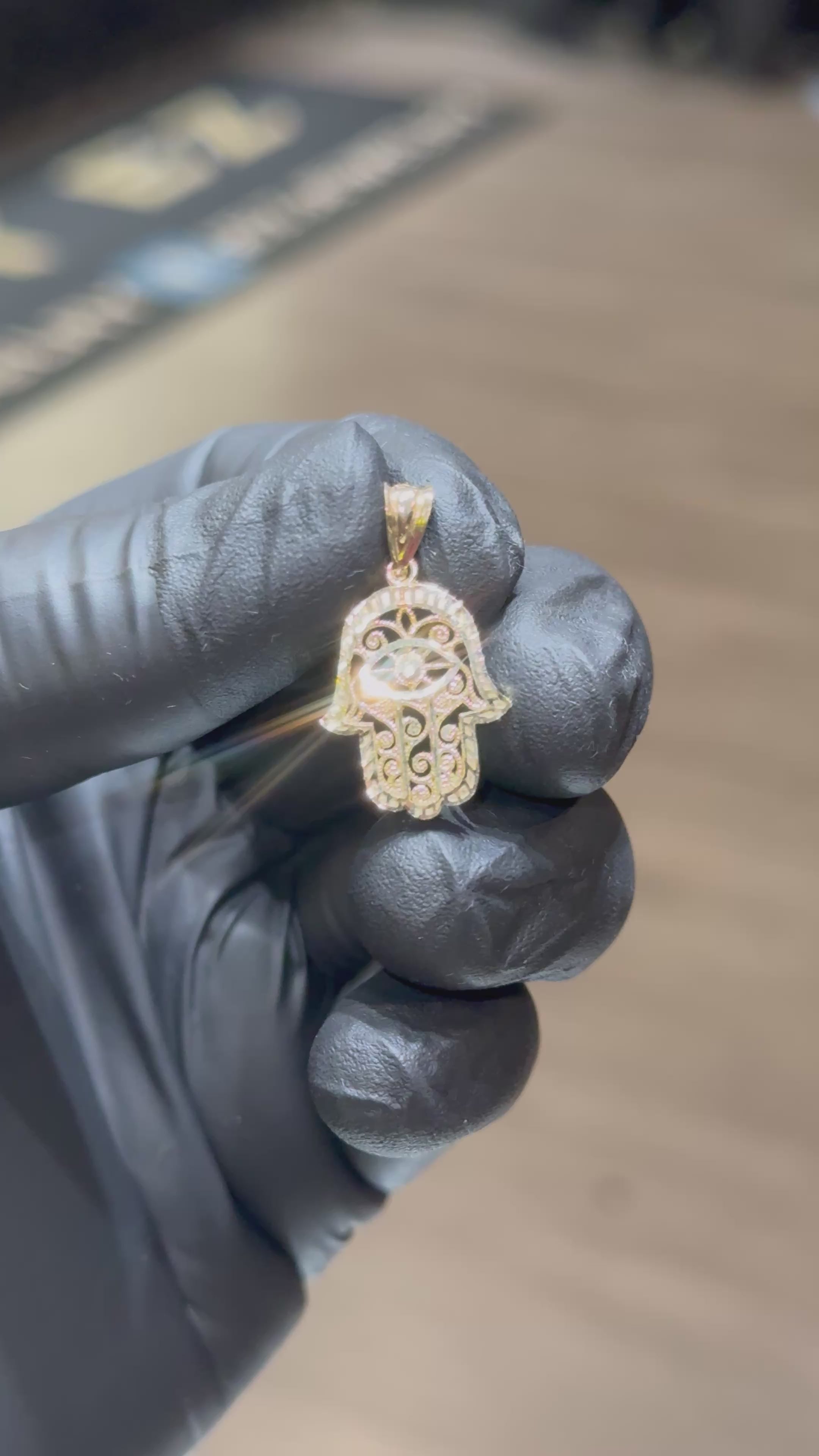 ~ 10k Hamza Hand with Diamond Cut Border and Cut-Out detailing