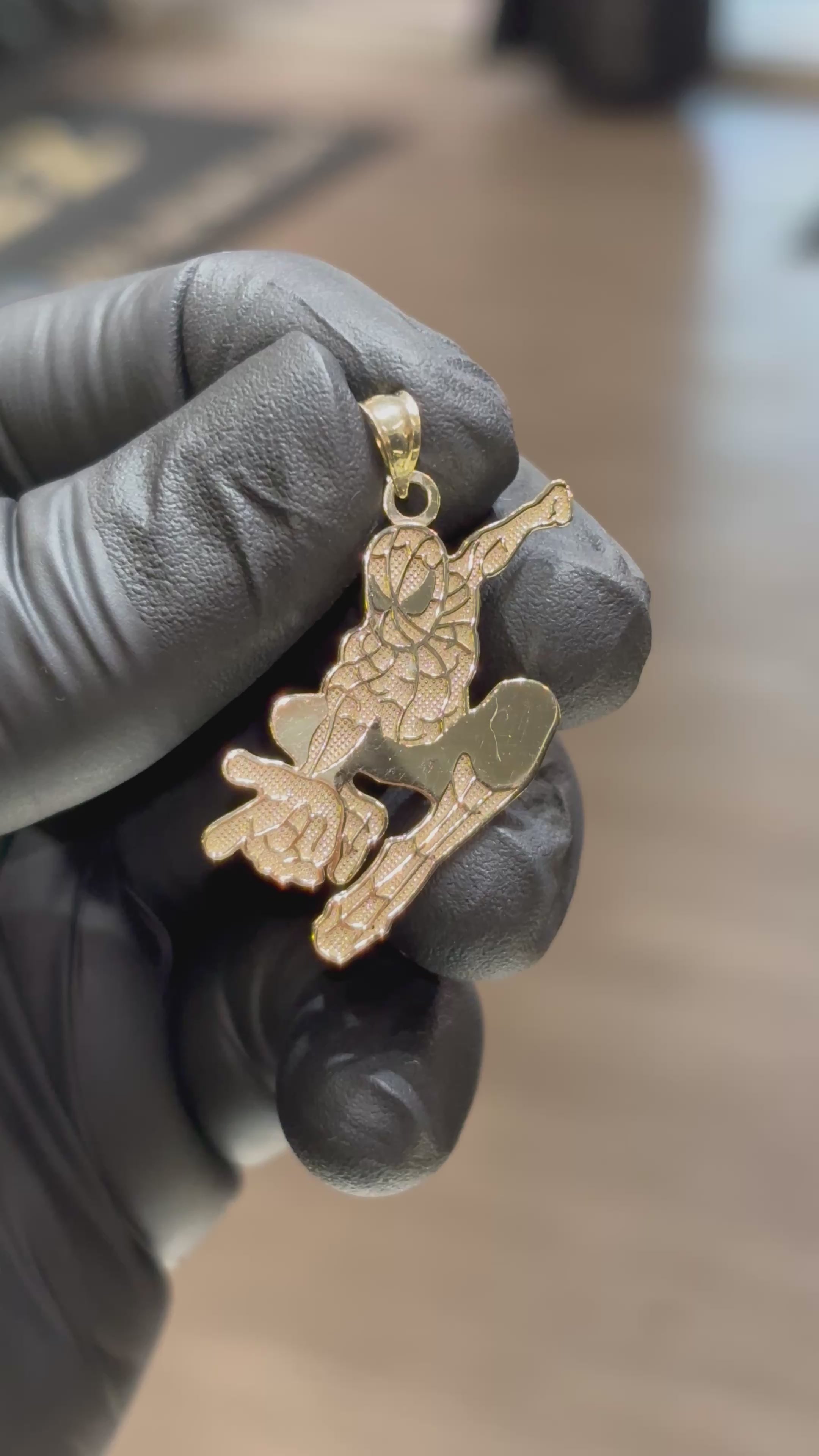 ~ 10k Spider-Man Pendant with Textured Mirrored Finish