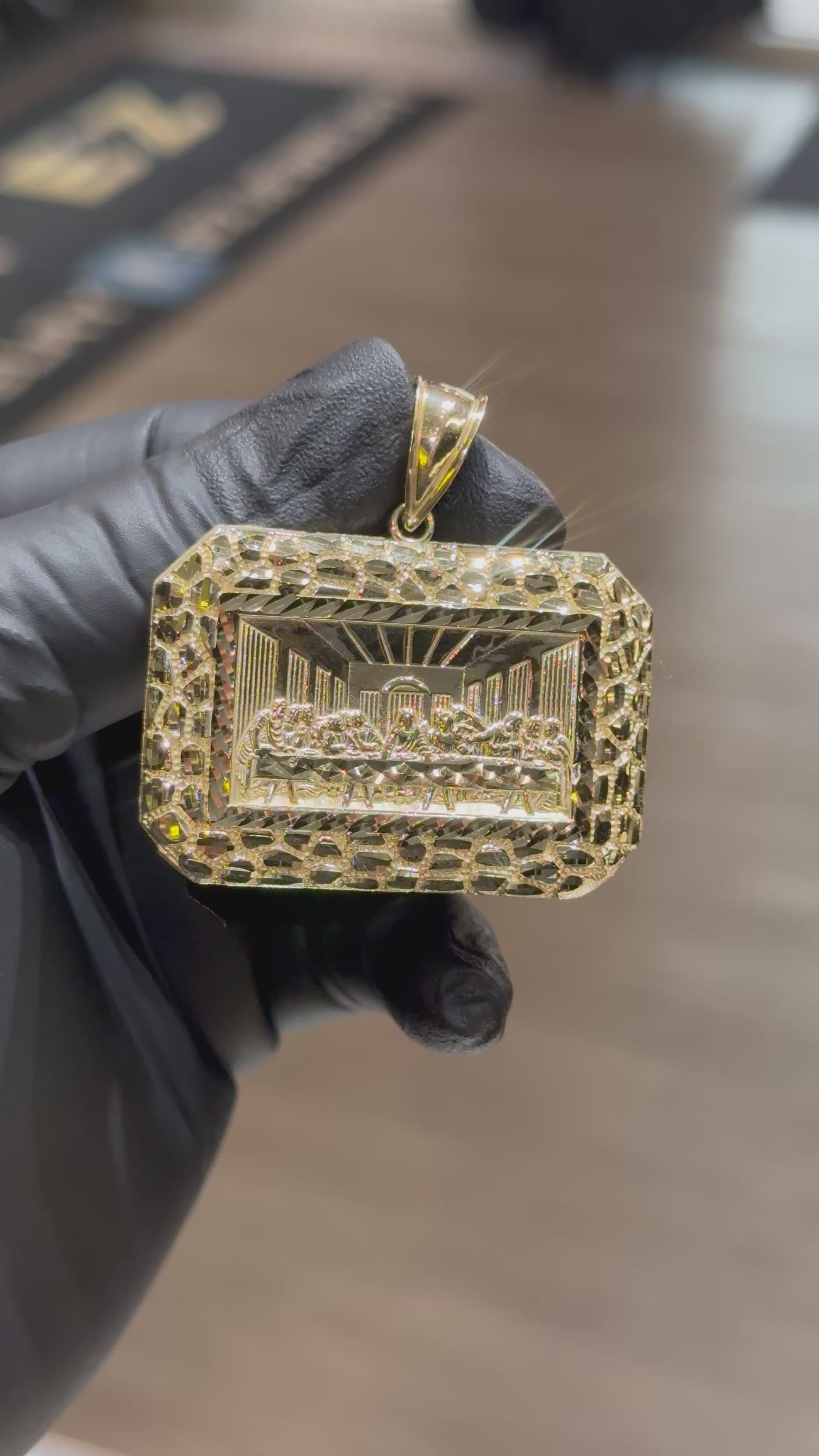 ~ 10k Large Last Supper Pendant with Nugget Texture Border and Diamond Cut Detail