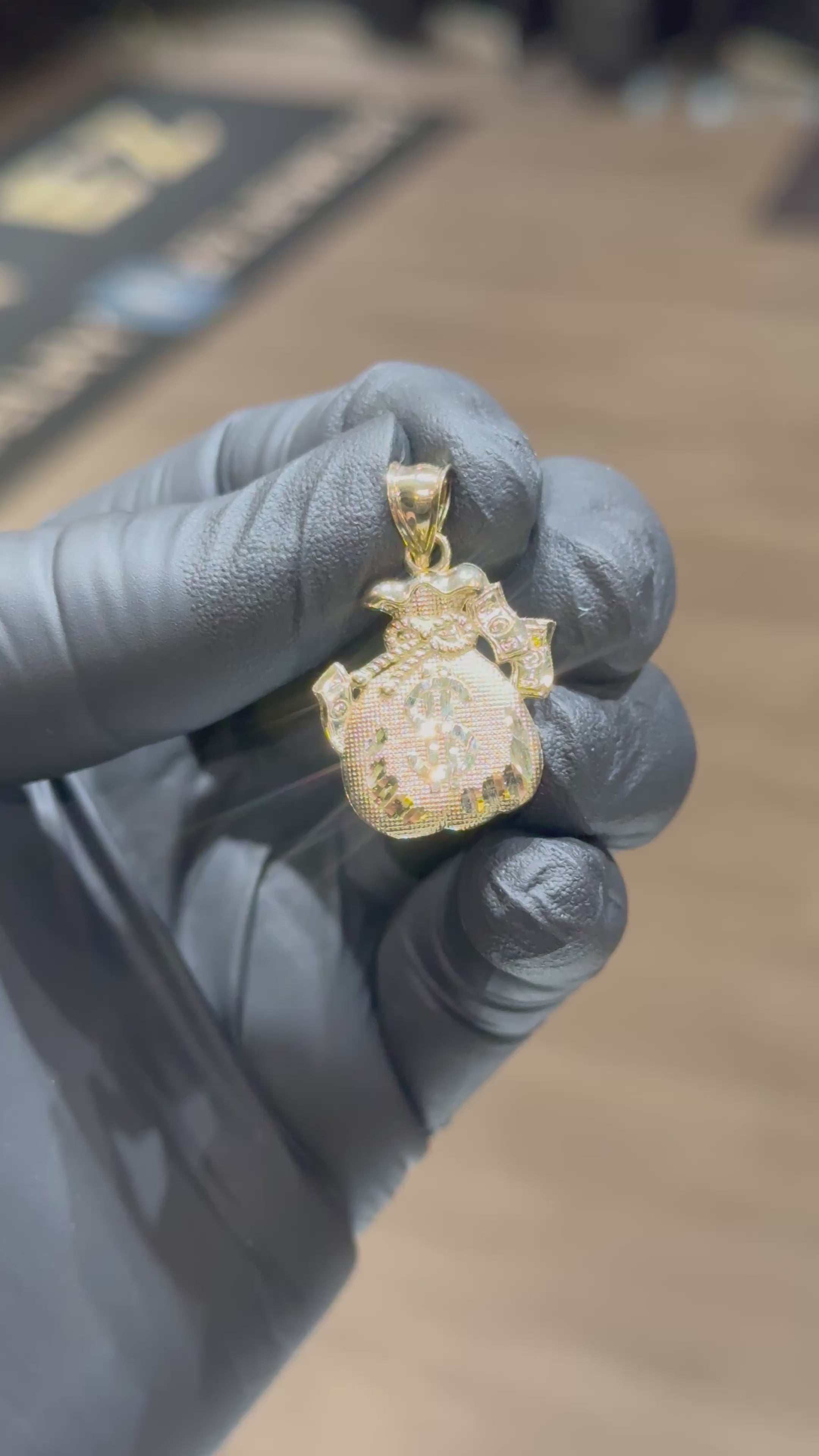 ~ 10k Version 2 Updated Large/Wide Money Bag Pendant with Diamond Cut Details