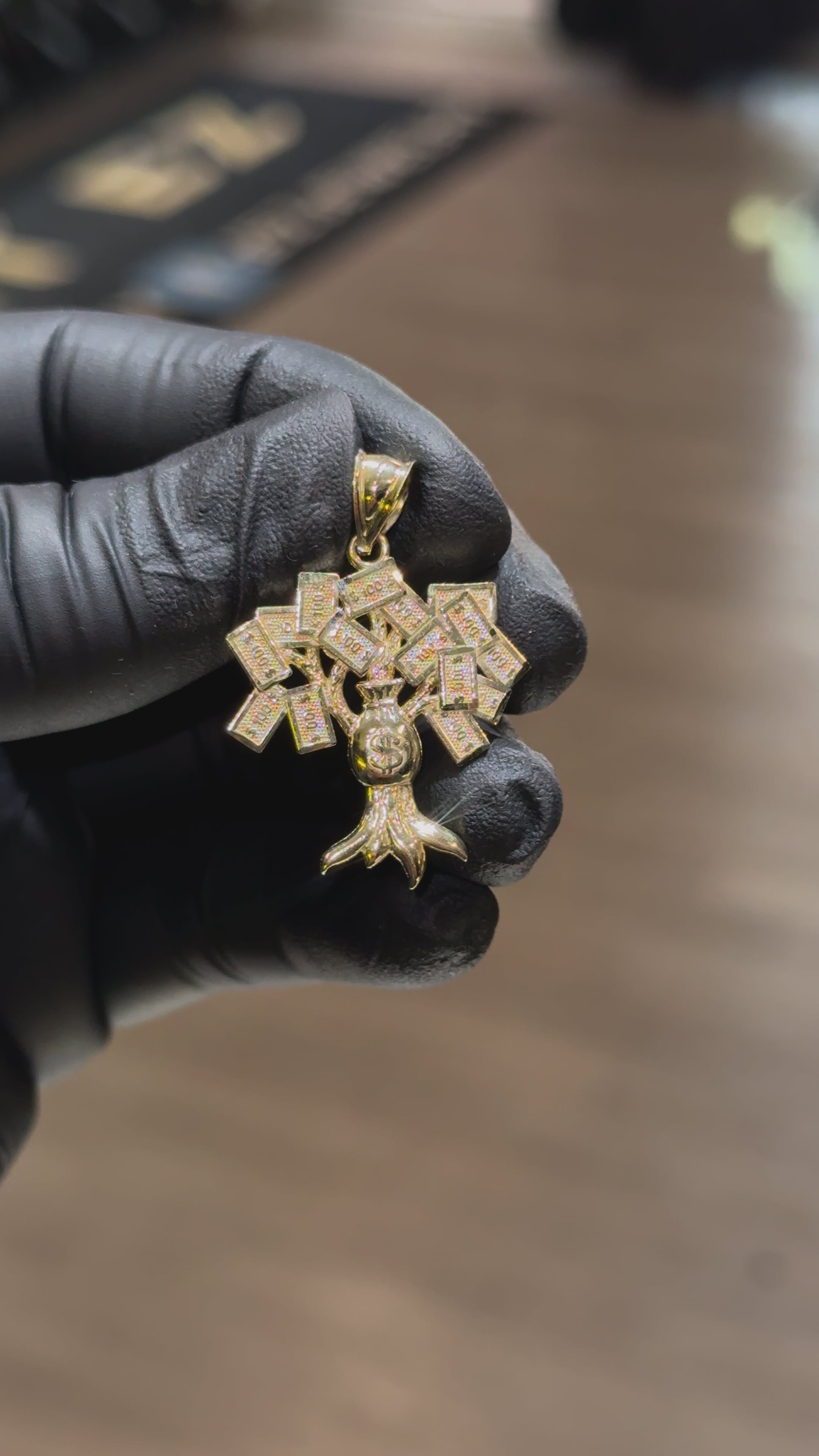 ~ 10k Medium Textured Money Tree Pendant with Diamond Cut Details