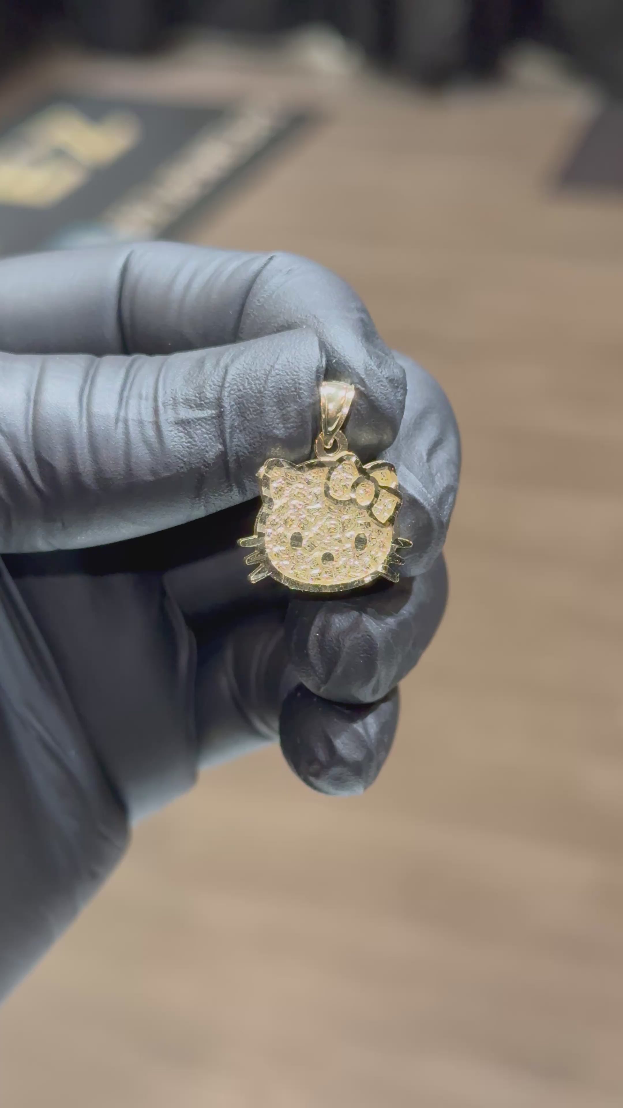 ~ 10k Nugget Textured Hello Kitty Head Pendant with Diamond Cut Outline