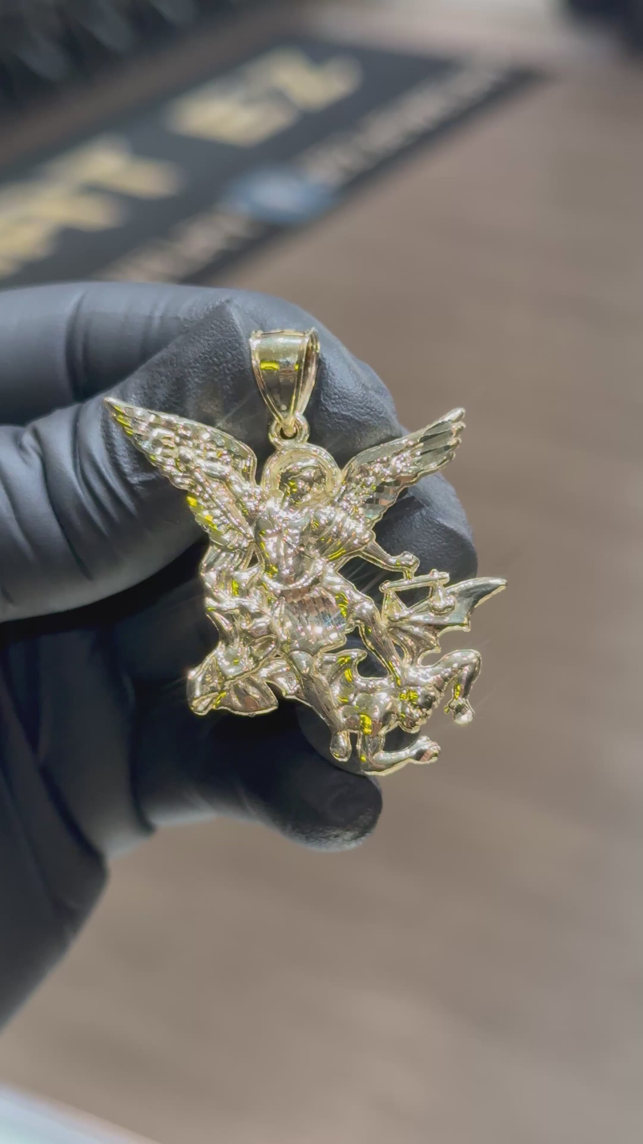 ~ 10k Saint Michael Archangel Pendant with Diamond Cut detail