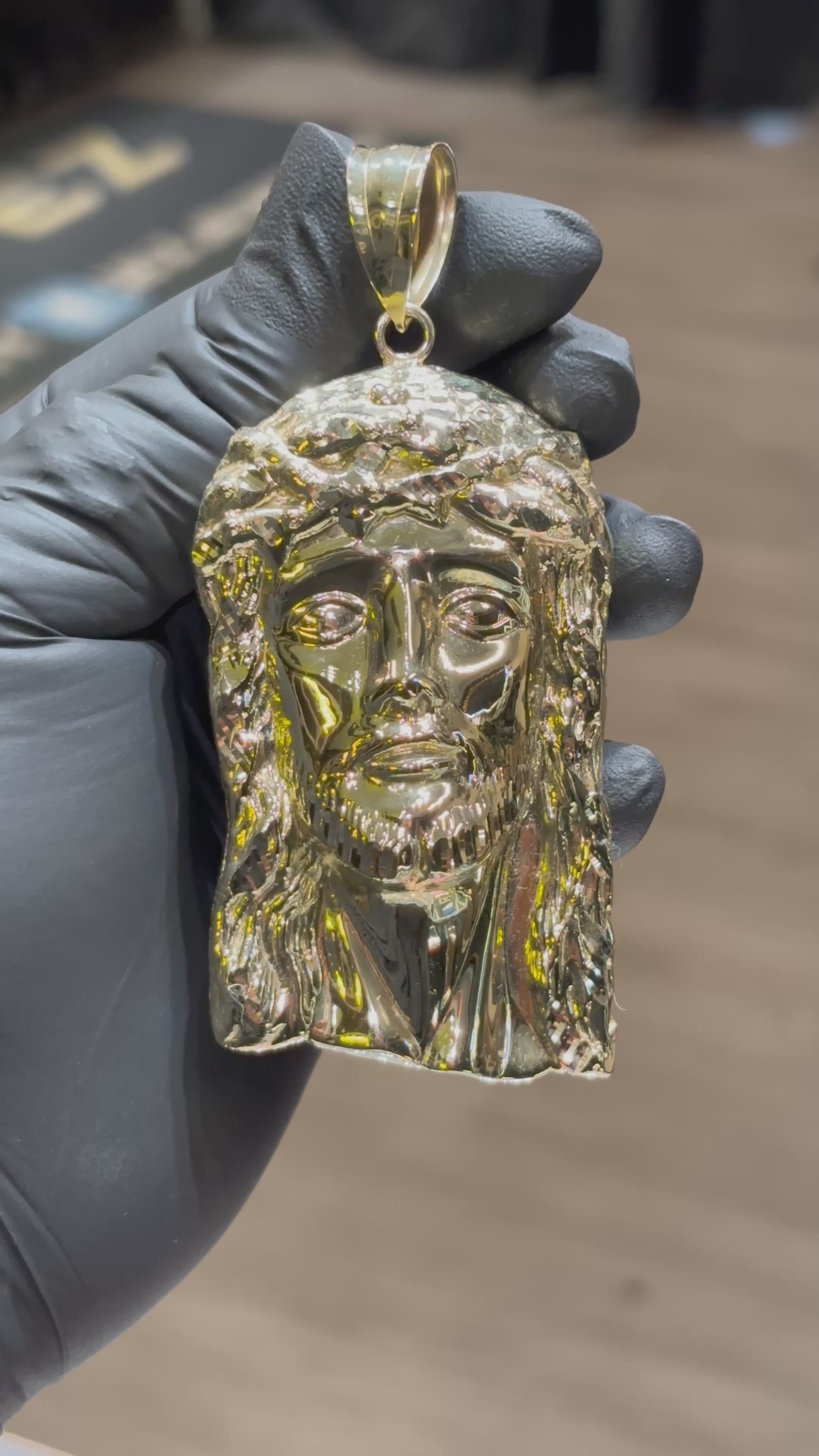~ 10k XXL Embossed Jesus Head Pendant with Mirror Finish and Diamond Cut Detailing