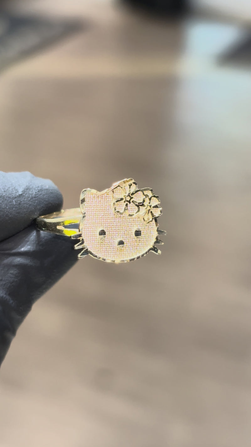 10k XL Full Body Nugget Hello Kitty Ring