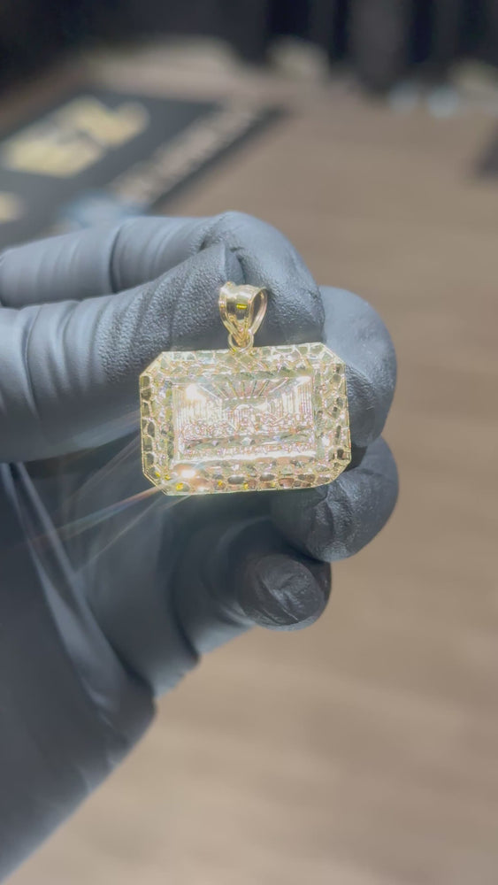 ~ 10k Small Last Supper Pendant with Nugget Texture Border and Diamond Cut Detail